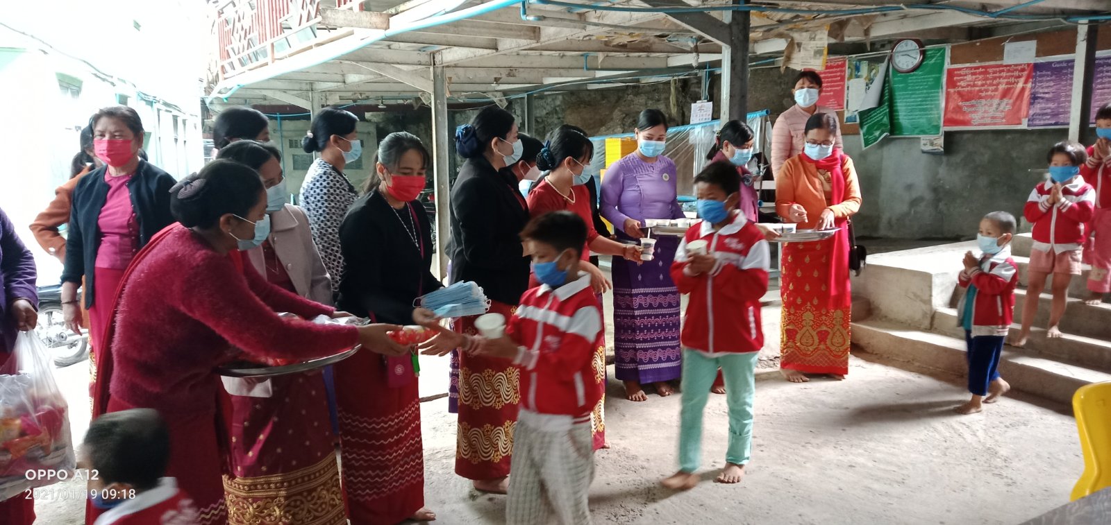 အသက်(၁၀)နှစ်အောက် ကလေးသူငယ်များအား အာဟာရနို့တိုက်ကျွေးရာမှာ သောကြာကြယ် ပရဟိတ ကျောင်းရှိကလေး(၃၀)ဦးအား ကျောက်ဆည်ခရိုင်/မြို့နယ်အမျိုးသမီး ကော်မတီဝင်များ က နွားနို့များတိုက်ကျွေး ခြင်းနှင့် အာဟာရဖြစ်စေမည့်မုန့်များနှင့် Mask များပေးဝေခြင်းများ ဆောင်ရွက်ခဲ့ကြကြောင်းသိရသည်။