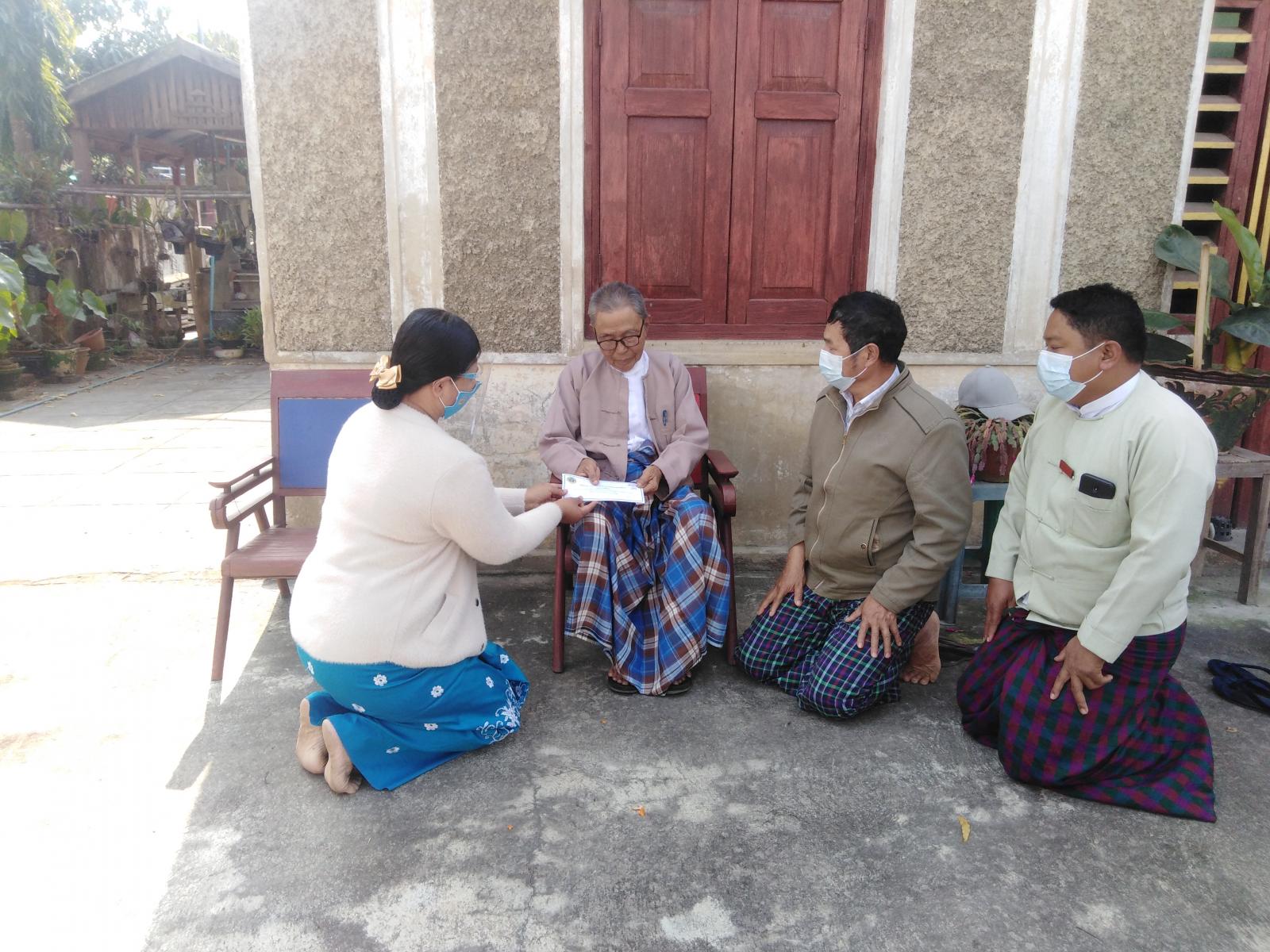 ထောက်ပံ့ငွေပေးအပ်ရာတွင် ခရိုင်လူမှုဝန်ထမ်းဦးစီးဌာနမှ ဒုတိယညွှန်ကြားရေးမှူး ဒေါ်နွယ်နွယ်အောင် နှင့်မြို့နယ် အထွေထွေအုပ်ချုပ်ရေးဦးစီးဌာနမှဒုတိယဦးစီးမှူးဦးခင်မောင်ကျော်တို့ကမြို့ပေါ်ရပ်ကွက်များဖြစ်သည့် ရွာသစ်ကုန်း၊ အရှေ့စုနှင့်အောင်သပြေရပ်ကွက်များရှိ သက်ကြီးဘိုးဘွားများအား လူမှုရေးပင်စင်တစ်လ (၁၀၀၀၀)နှုန်းဖြင့် ၂၀၂၀ပြည့်နှစ်(အောက်တိုဘာ၊နိုဝင်ဘာ၊ဒီဇင်ဘာ)လများအတွက်ငွေကျပ်(၃၀၀၀၀)ကိုဘိုဘွားလက်ဝယ်အရောက်ထောက်ပံ့ပေးအပ်ခဲ့ကြပြီးအောင်သပြေရပ်ကွက်ရှိအသက်(၁၀၀)နှစ်နှင့်အထက်သက်ကြီးဘိုးဘွား(၁)ဦးကိုထပ်ဆောင်းထောက်ပံ့ငွေကျပ်(၃၀၀၀၀)ကိုလည်းပေးအပ်ခဲ့ကြောင်းသိရသည်။