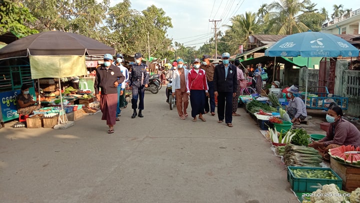 ဧရာဝတီတိုင်းဒေသကြီး၊ ဖျာပုံခရိုင်၊ ကျိုက်လတ်မြို့နယ်အတွင်းရှိ ဈေးများတွင် ကိုဗစ်-၁၉ရောဂါ ပြန့်ပွားမှု ထိန်းချုပ်နိုင်ရေး အတွက် ယနေ့နံနက်ပိုင်း၌ တာဝန်ရှိသူများက ဆက်လက်ကွင်းဆင်း စစ်ဆေးလျက်ရှိသည်။