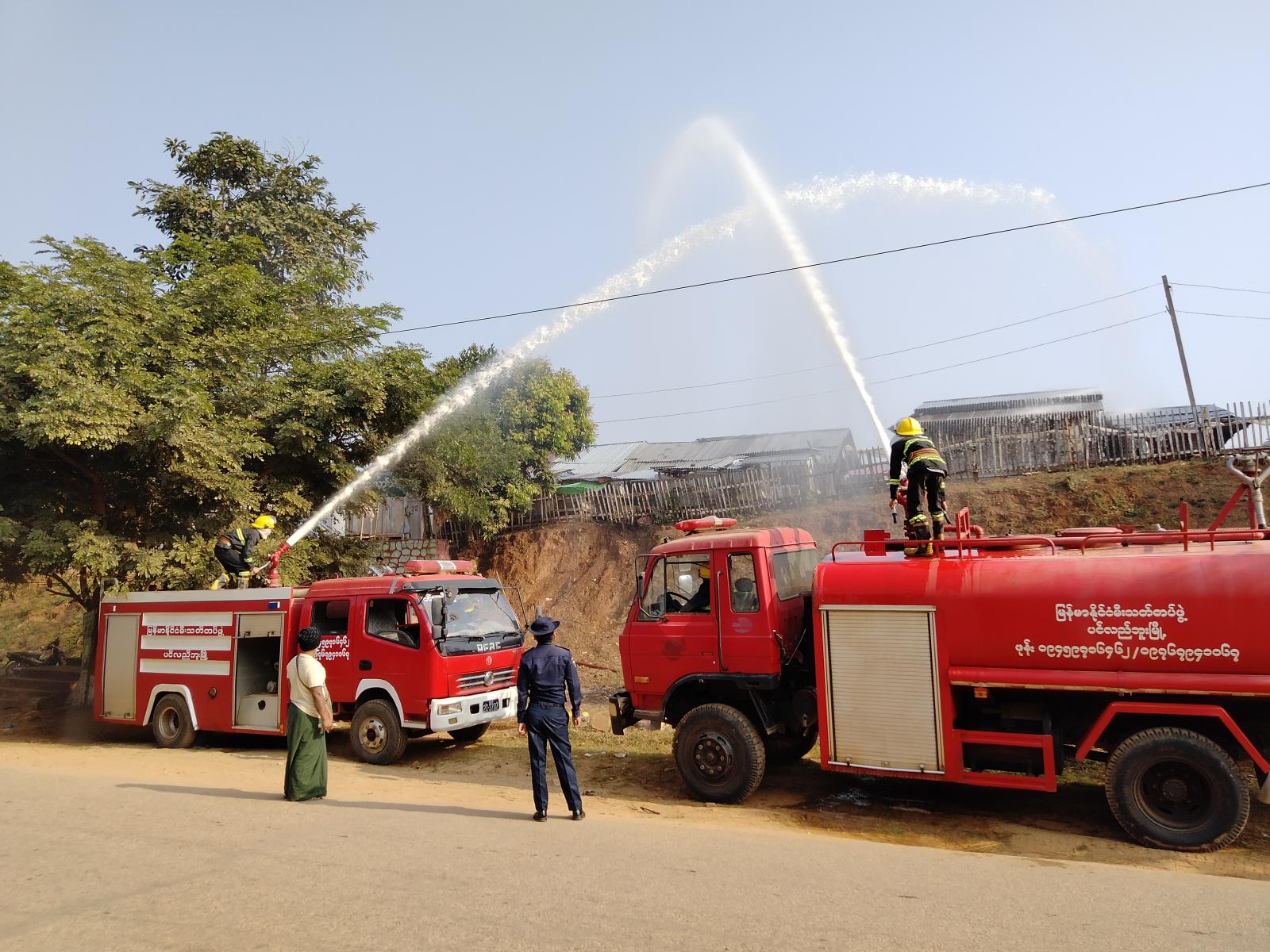 ထိုသို့ ပြုလုပ်ဆောင်ရွက်ရာတွင် မြို့နယ်စီမံခန့်ခွဲမှုကော်မတီဥက္ကဋ္ဌ ဦးသက်နောင်၊ အမှတ်(၂)တိုင်းဒေသကြီးလွှတ်တော်ကိုယ်စားလှယ် ဦးသန်းလှိုင်၊ မြို့နယ်ရဲတပ်ဖွဲ့မှူး ရဲမှူး စံလင်း၊မြို့နယ်မီးသတ်ဦးစီးမှူးနှင့် မီးသတ်တပ်ဖွဲ့ဝင်များ၊ မြို့နယ်စီမံကိန်း ဦးစီးမှူး၊ မြို့နယ် စည်ပင်သာယာရေးကော်မတီဥက္ကဋ္ဌ၊ ဌာနဆိုင်ရာများ တက်ရောက်ခဲ့ကြ၍ မီးသတ်တပ်ဖွဲ့ဝင် များက စည်ပင်သာယာစျေးတွင် မီးငြိမ်းသတ် ယာဉ်များဖြင့် ရေဖျန်းသရုပ်ပြခြင်း၊ မြို့နယ် မီးသတ်ဦးစီးမှူး ဦးမျိုးနေတိုးက မီးငြိမ်းသတ်ရာတွင် မီးသတ်ဆေးဗှူး ကိုင်တွယ်အသုံးပြုနည်း ရှင်းလင်း ဆွေးနွေးပြောကြားပြီး မီးသတ်တပ်ဖွဲ့ဝင်များက မီးဘေးအန္တရာယ် ကြုံတွေ့ပါက မီးသတ်ဆေးဘူးနှင့် ရေစိုဝတ်အသုံးပြု၍ လက်တွေ့မီးငြိမ်းသတ်နည်း ဇာတ်တိုက်လေ့ ကျင့်ခြင်းများ သရုပ်ပြကြရာ တက်ရောက်လာကြသူများမှ စိတ်ဝင်တစားလေ့လာကြည့်ရှုကာ လက်တွေ့မီးငြိမ်းသတ်နည်းတွင် ပူးပေါင်းပါဝင် ဆောင်ရွက်ခဲ့ကြောင်းသိရသည်။