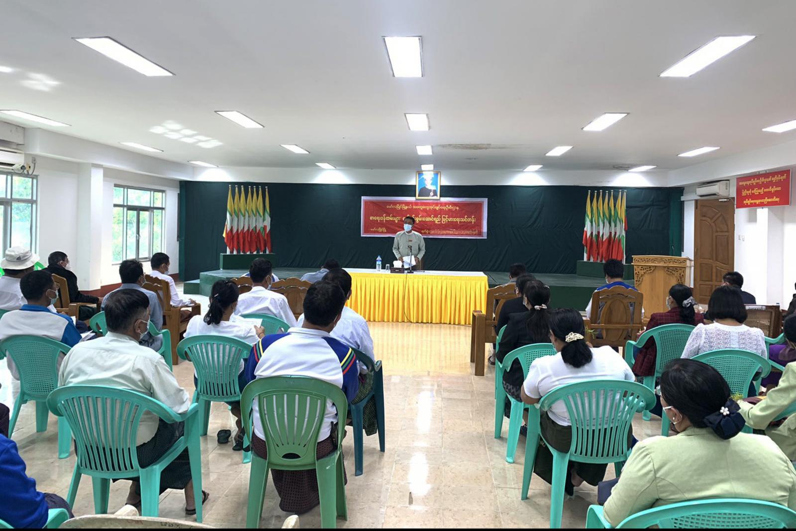ဆွေးနွေးပွဲတွင် မြို့နယ်အုပ်ချုပ်ရေးမှူး ဦးဝေလင်းထွန်းက ဥပဒေ၊ နည်းဥပဒေများတွင် ပြ ဌာန်းထားသည့် လုပ်ငန်း အကောင်အထည်ဖော်ဆောင်ရွက်မည့် Time Frame များ၊ ရပ်ကွက်/ ကျေးရွာအုပ်စု အုပ်ချုပ်ရေးမှူးများ စိစစ်ရွေးချယ်ရာတွင် ကြီးကြပ်ရေးအဖွဲ့ ဖွဲ့စည်းပြီး ဆယ်အိမ်စုမှူး၊ ရာအိမ်စုမှူး အဆင့်ဆင့်ရွေးချယ်ခြင်းတွင် ဌာနဆိုင်ရာများ ပူးပေါင်း ပါဝင်ကြရေးနှင့် ကိုဗစ်−၁၉ ရောဂါဖြစ်ပွားနေသည့် ကာလဖြစ်၍ ကျန်းမာရေးနှင့် အားကစား ဝန်ကြီးဌာန၏ လမ်းညွှန်ချက်များ နှင့်အညီ ဆောင်ရွက်ကြရေးတို့ကို ဆွေးနွေးပေးသည်။ ထို့နောက် တက်ရောက်လာသော ရပ်ကွက်/ ကျေးရွာအုပ်စု အုပ်ချုပ်ရေးမှူးများ၊ စာရေး ဝန်ထမ်းများက သိရှိလိုသည်များ မေးမြန်းဆွေးနွေးကြရာ တာဝန်ရှိသူများက ပြန်လည် ဖြေကြား ပေးကြောင်း သိရသည်။