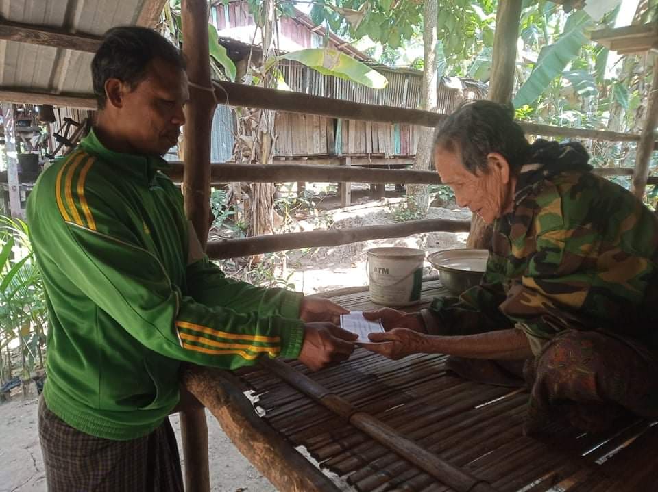 လူမှုဝန်ထမ်းကယ်ဆယ်ရေးနှင့် ပြန်လည်နေရာချထားရေးဝန်ကြီးဌာန၏ ၂၀၂၀- ၂၀၂၁ ဘဏ္ဍာရေးနှစ်မှ အောက်တိုဘာ၊ နိုဝင်ဘာလ၊ ဒီဇင်ဘာလအတွက် သုံးလတစ်ကြိမ် လူမှုရေးပင်စင်ထောက်ပံ့ငွေကို ဘိုးဘွားတစ်ဦးလျင် ငွေကျပ်သုံးသောင်းနှုန်းဖြင့် သက်ကြီးဘိုးဘွား (၁၀)ဦးတို့အား ရပ်ကွက်/ကျေးရွာအုပ်ချုပ်ရေးမှူးတို့က အိမ်တိုင်ရာရောက် သွားရောက် ထောက်ပံ့ပေးအပ်ခဲ့ကြောင်းသိရှိရသည်။