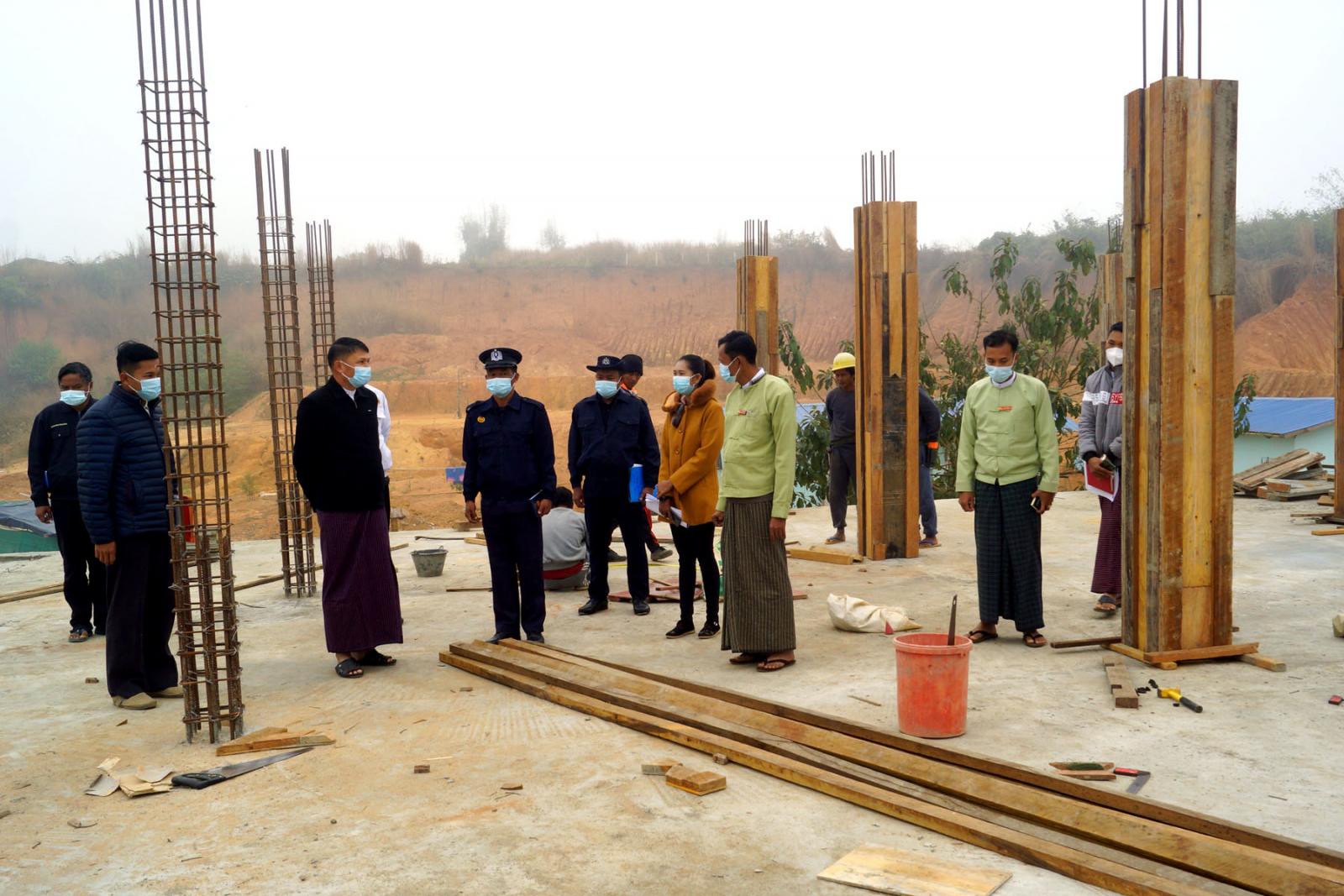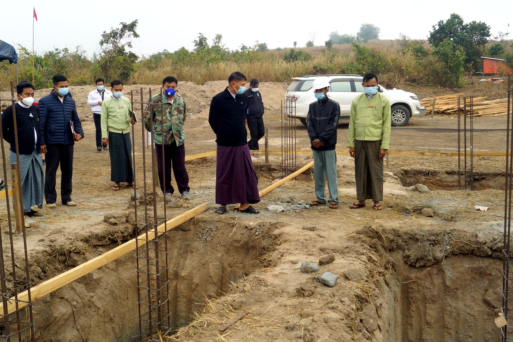 ရှေးဦးစွာ ပြည်နယ်ဒုတိယအုပ်ချုပ်ရေးမှူး ဦးရဲနိုင်နှင့် တာဝန်ရှိသူတို့က ၂၀၂၀-၂၀၂၁ ဘဏ္ဍာနှစ် ပြည်နယ်ခွင့်ပြုရန်ပုံငွေ ကျပ် (၂၂၀.၆၀၅)သန်းဖြင့် တင်ဒါအောင်မြင်သည့် တင်မြင့်ရီဆောက်လုပ်ရေးကုမ္ပဏီမှ တာဝန်ယူတည်ဆောက်လျက်ရှိသော အလျား (၇၅)ပေ၊ အနံ(၅၂)ပေ၊ အမြင့်(၂၆)ပေ RC (၂)ထပ် ခရိုင်မီးသတ်ဦးစီးဌာနရုံး တည်ဆောက်နေမှုကိုလည်းကောင်း၊ ပြည်နယ်ခွင့်ပြု ရန်ပုံငွေကျပ် (၁၂၈.၇)သန်းဖြင့် တင်ဒါအောင်မြင်သည့် သုံးယိင်းဟွား ဆောက်လုပ်ရေးကုမ္ပဏီမှ တာဝန်ယူတည်ဆောက်လျက် ရှိသော အလျား(၅၀)ပေ၊ အနံ(၄၀)ပေ၊ အမြင့်(၂၄)ပေ RC နှစ်ထပ် ခရိုင်ဥပဒေရုံး အဆောက်အဦကိုလည်းကောင်း၊ ပြည်ထောင်စု ခွင့်ပြုရန်ပုံငွေ ကျပ်(၄၀.၆၄၁)သန်းဖြင့် တင်ဒါအောင်မြင်သည့် မြဲမြသော်တာ ဆောက်လုပ်ရေး ကုမ္ပဏီမှ အမျိုးသမီးအိမ်တွင်းမှု သက်မွေးသင်တန်းကျောင်းတွင် တာဝန်ယူ ဆောင်ရွက်နေသော အလျား(၄၇၇)ပေ၊ အနံ(၇)ပေ အုတ်တံတိုင်း သံပန်းဖြင့် ခြံစည်းရိုးကာရံခြင်း၊ အလျား(၉၀)ပေ၊ အနံ(၃၀)ပေ၊ အမြင့်(၁၂)ပေ သင်တန်းသူအိပ်ဆောင်ကြမ်းခင်း ပြုပြင်ခြင်း၊ အုပ်ချုပ်မှုရုံး၊ စာသင်ဆောင်၊ ခန်းမဆောင် ဆေးသုတ်ခြင်းလုပ်ငန်းများကို လည်းကောင်း၊ ပြည်ထောင်စု ခွင့်ပြုရန်ပုံငွေ ကျပ် (၁၇၈.၂၀၀) သန်းဖြင့် ရွှေမိုင်းဆတ်ဆောက်လုပ်ရေး ကုမ္ပဏီမှ တာဝန်ယူတည်ဆောက်နေသည့် အလျား (၁၀၀)ပေ၊ အနံ(၃၀)ပေ၊ အမြင့် (၂၄)ပေ RC(၂)ထပ် မြို့နယ်ပညာရေးမှူးရုံးအဆောက်အဦ တည်ဆောက်နေမှုကိုလည်းကောင်း ကွင်းဆင်းကြည့်ရှု စစ်ဆေးခဲ့ကြောင်းသိရသည်။