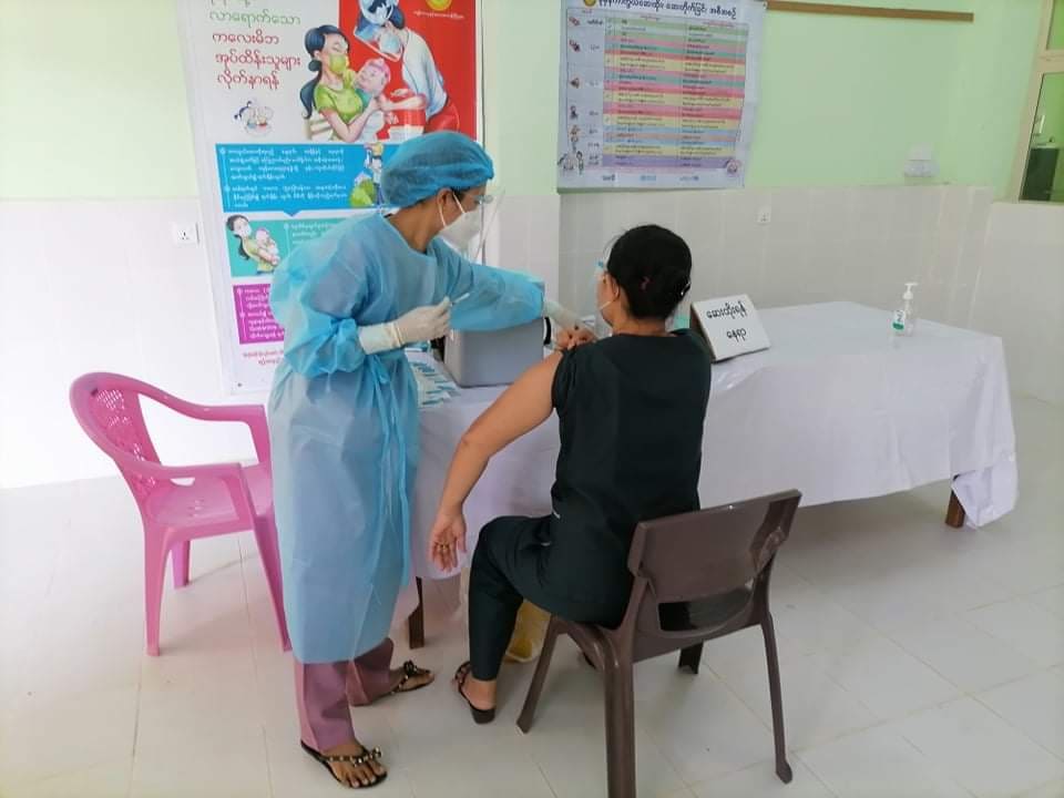 "ကျနော်တို့ကမြို့အဆင့်ဆိုတော့ ဒီကကျန်းမာရေးဝန်ထမ်းအားလုံးက ရေဖြူမြို့နယ်ဆေးရုံကြီးမှာ သွားရောက်ထိုးကြပါတယ်၊ အခုဒီနေ့ဆို (၇)ဦး ဆေးထိုးပြီးပြီပေါ့၊ နောက်နေ့ကျရင် မြို့အတွင်းရှိ ကျန်းမာရေးဌာနမှ ဆရာ၊ ဆရာမများက ရေဖြူမြို့နယ် -ကုတင်၅၀စုရပ်တွင်သတ်မှတ်ရက်များ အလိုက်လူဦးရေအလှည့်ကျဆက်လက် ထိုးနှံပေးသွားမှာ ဖြစ်ကြောင်း ကလိန်အောင်မြို့ ကျန်းမာရေးဦးစီးဌာနမှ သိရသည်။