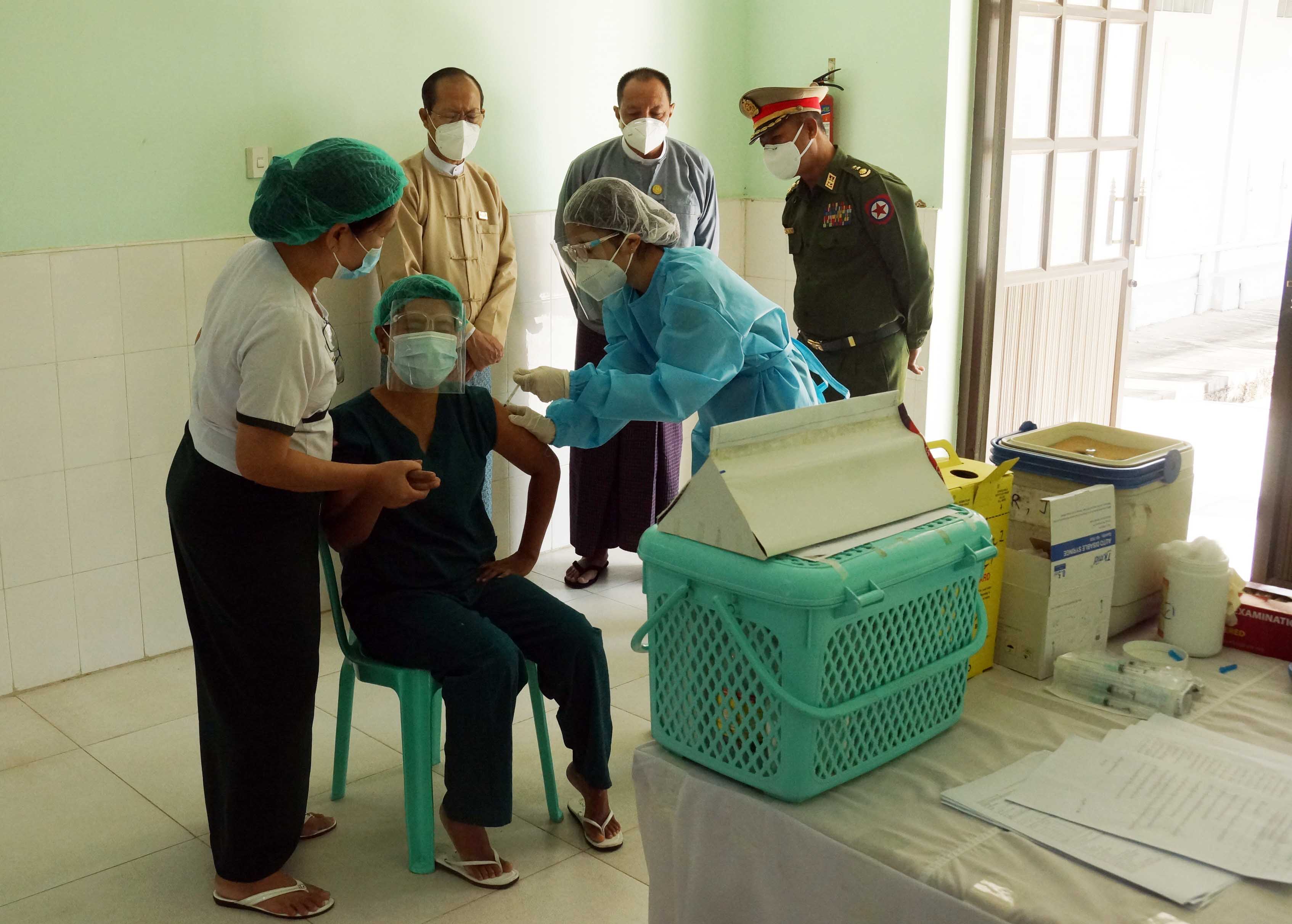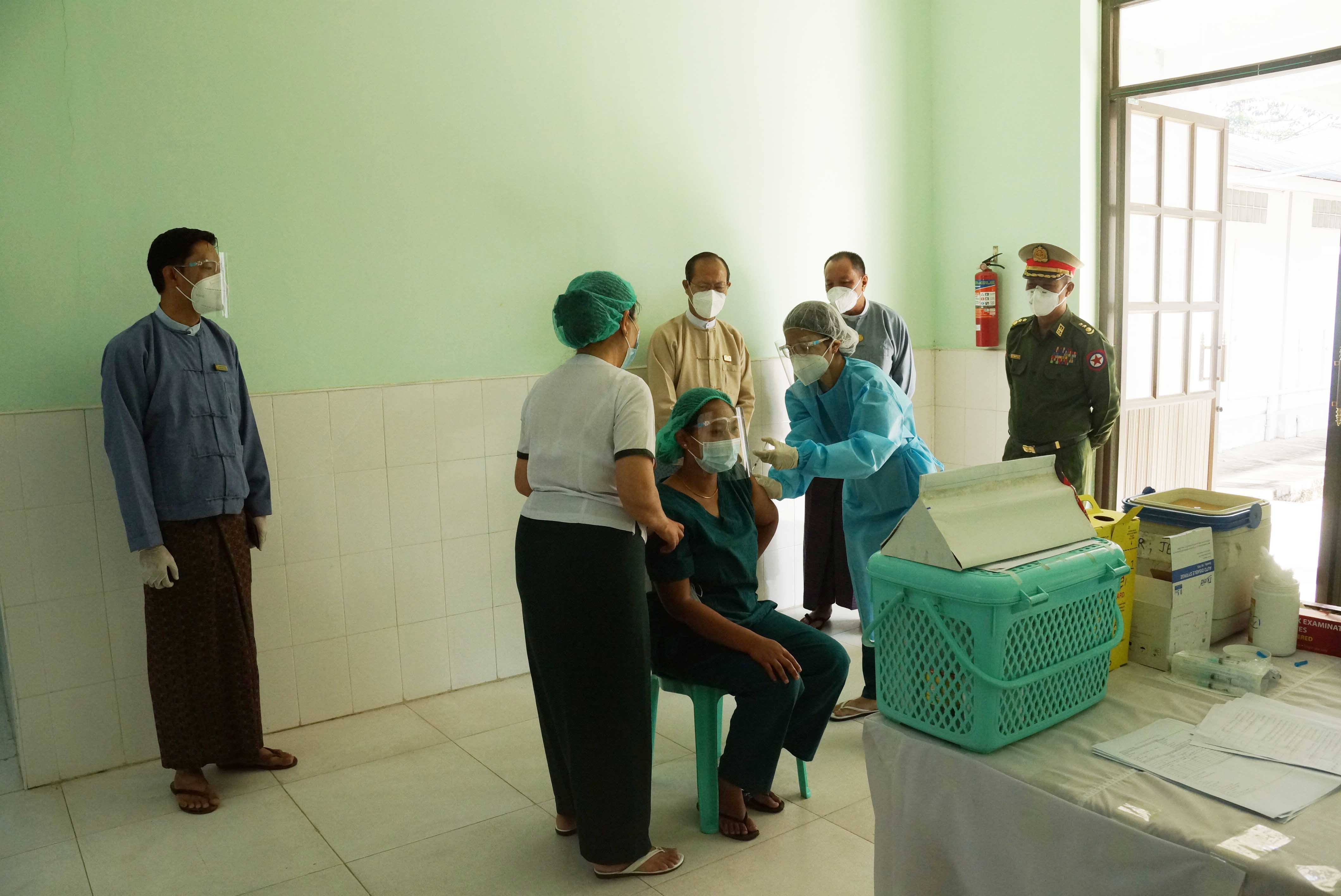 နေပြည်တော်ရှိ မြို့နယ်ပြည်သူ့ကျန်းမာရေးနှင့်ကုသရေးဦးစီးဌာန၊ ကိုဗစ်ရောဂါကာကွယ် ထိန်းချုပ်ရေးနှင့် ကုသရေးလုပ်ငန်း စဉ် တွင် အဓိက တာဝန်ထမ်းဆောင်နေသည့် ကျန်းမာရေး ဝန်ထမ်းများကို ဒက္ခိဏသီရိမြို့နယ်တွင် (၅၅)ဦး၊ ပျဉ်းမနားမြို့နယ်၊ ခုတင်(၂၀၀)ဆံ့ဆေးရုံကြီးတွင် (၄၂၀)ဦး၊ လယ်ဝေးမြို့နယ်တွင် (၃၁၅)ဦး၊ ဇမ္ဗူသီရိမြို့နယ်တွင်(၆၉)ဦး၊ ဥတ္တရသီရိမြို့နယ် ခုတင်(၅၀)ဆံ့ဆေးရုံတွင်(၈၃)ဦး ၊ တပ်ကုန်းမြို့နယ်တွင် (၂၃၁)ဦး၊ ပုဗ္ဗသီရိမြို့နယ်တွင် (၁၃၅)ဦး ဇေယျာသီရိမြို့နယ်တွင် (၉၉)ဦး စုစုပေါင်း(၁၄၀၇)ဦးတို့အား ယနေ့ နံနက်ပိုင်းတွင် အိန္ဒိယနိုင်ငံထုတ် ကိုဗစ်-၁၉ ကာကွယ်ဆေးကို ပထမအကြိမ် ထိုးနှံလျက်ရှိပြီး ဒုတိယအကြိမ်ကို နောက် ၂၈ ရက်အကြာတွင် ထိုးနှံရမည်ဖြစ်ကြောင်း သိရသည်။