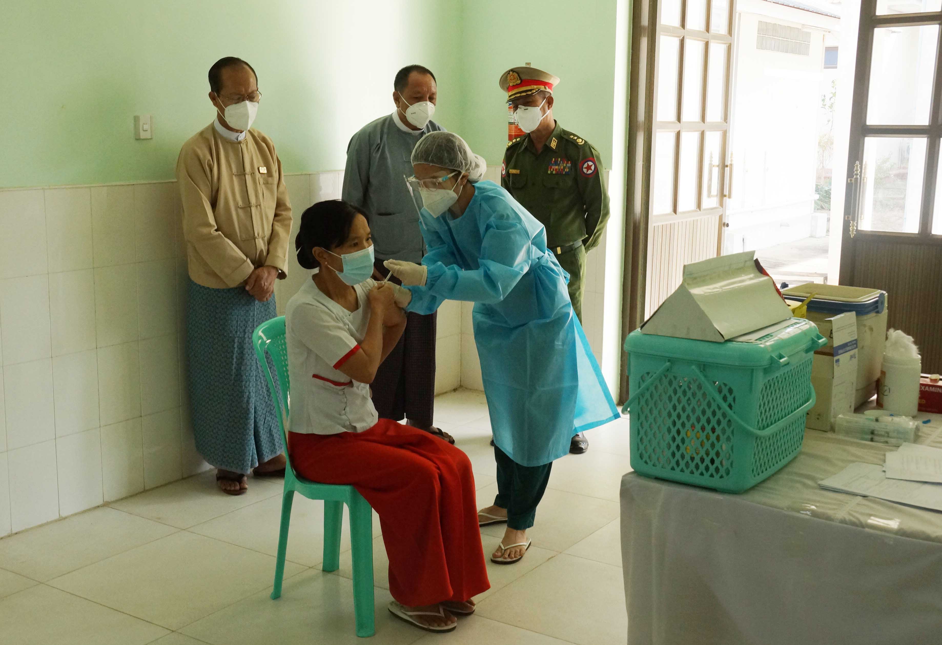 နေပြည်တော်ရှိ ကိုဗစ်ရောဂါကာကွယ်ထိန်းချုပ်ရေးနှင့်ကုသရေးလုပ်ငန်းစဉ်တွင် အဓိက တာဝန်ထမ်းဆောင်နေသည့် ကျန်းမာရေးဝန်ထမ်းများကို ယနေ့တွင် နံနက်ပိုင်း၊ နေ့လည်ပိုင်းခွဲကာ တစ်ရက်တည်းအပြီး ထိုးနှံပေးသွားမည် ဖြစ်ကြောင်း၊ ထိုးနှံပြီးသူများကို မှတ်တမ်းကတ်ပြား ထုတ်ပေးမည်ဖြစ်ပြီး ဒုတိယအကြိမ်တွင် အဆိုပါကတ်ပြားနှင့်အတူ လာရောက် ထိုးနှံရမည်ဖြစ်ကြောင်းသိရသည်။