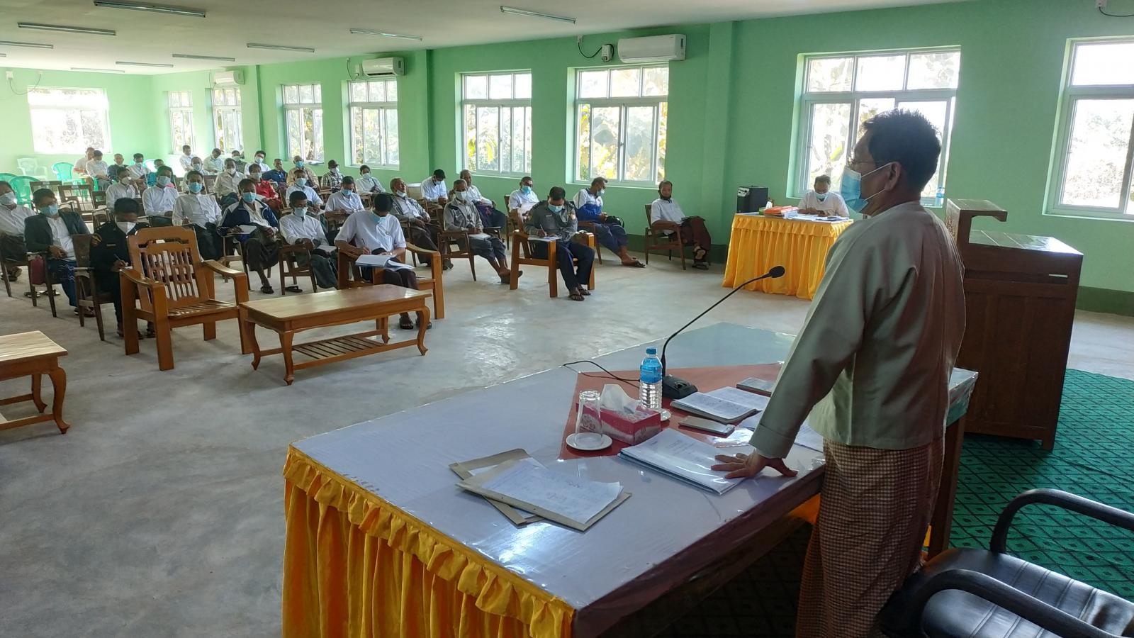ရှေးဦးစွာ မြို့နယ်အုပ်ချုပ်ရေးမှူး ဦးမျိုးညွန့်က ကိုဗစ်-၁၉ ရောဂါ ဖြစ်ပွားနေစဉ်ကာလ အတွင်း နိုင်ငံတော်အစိုးရအနေဖြင့် ပုံမှန်ဝင်ငွေ မရှိသော အခြေခံလူတန်းစား အိမ်ထောင်စုများ အတွက် ထောက်ပံ့မှုများ ပေးလျက်ရှိရာ အခြေခံလူတန်းစားများအား နောက်တိုး ထောက်ပံ့နိုင် ရေးအတွက် ဌာနဆိုင်ရာနှင့် ရပ်ကွက်/ ကျေးရွာအုပ်ချုပ်ရေးမှူးများ ပူးပေါင်း ပါဝင်စေလို ကြောင်း ပြောကြားသည်။