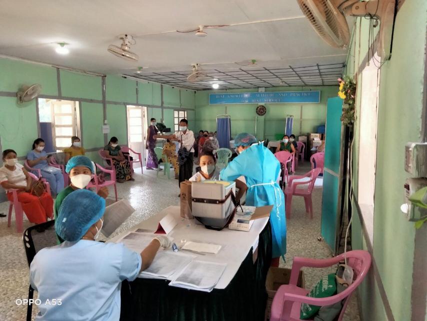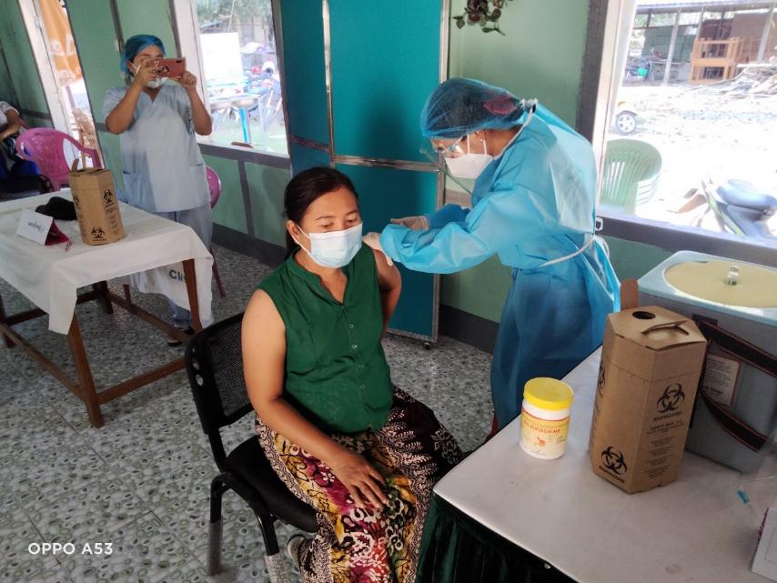 အဆိုပါ ပထမအကြိမ် ကာကွယ်ဆေးကို မြို့နယ်အတွင်းရှိ ဆေးရုံများ၊ ကျေးလက် ကျန်းမာ ရေးဌာနမှ ဝန်ထမ်းများ၊ မြို့နယ်တိုင်းရင်းဆေးဦးစီးဌာနနှင့် အားကစားနှင့်ကာယပညာဦးစီး ဌာန ဝန်ထမ်းများ စုစုပေါင်း (၁၅၀)ဦးခန့်ကို ယမန်နေ့ နံနက်ပိုင်းမှ စတင်၍ ပထမအကြိမ် စတင် ထိုးနှံပေးလျက်ရှိကြောင်း မြို့နယ်ကျန်းမာရေးဦးစီးဌာနမှ သိရသည်။