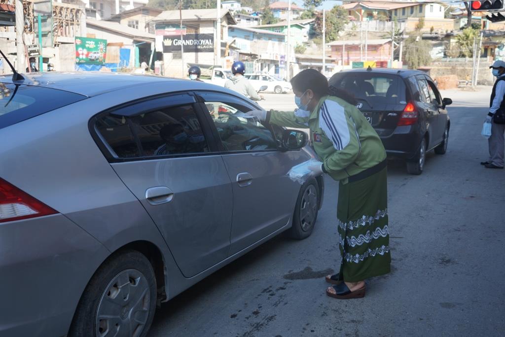 ရှမ်းပြည်နယ်(တောင်ပိုင်း) တောင်ကြီးမြို့တွင် ကိုဗစ်-၁၉ ရောဂါ ကာကွယ်၊ ထိန်းချုပ် တားဆီးနိုင်ရန် Mask ပါးစပ်နှာခေါင်းစည်း တပ်ဆင်ရေးလှုပ်ရှားမှုကို ယမန်နေ့ နံနက် ၉ နာရီအချိန်ခန့်က ဝါးပြားလမ်းဆုံမီးပွိုင့်၌ ဆောင်ရွက် ခဲ့ကြောင်း သိရသည်။