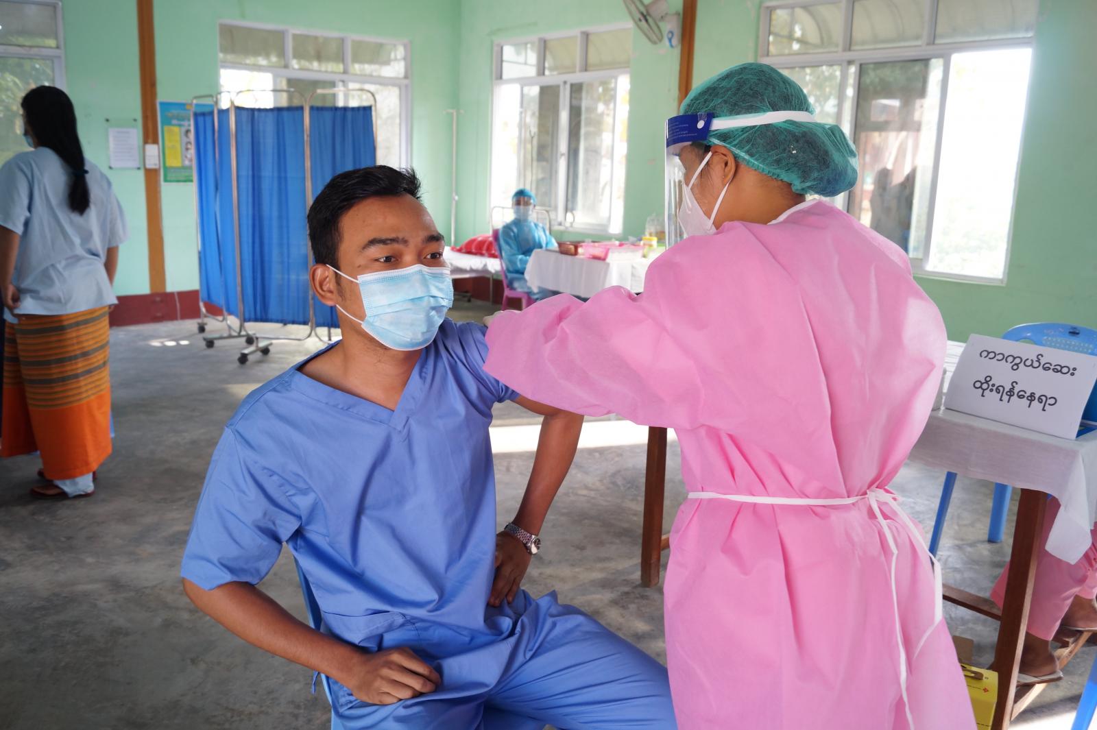 ကယားပြည်နယ်၊ ဘောလခဲခရိုင်၊ မယ်စဲ့မြို့နယ်အတွင်းရှိ ကျန်းမာရေးဝန်ထမ်းများအား ကိုဗစ်-၁၉ ကာကွယ်ဆေး ထိုးနှံခြင်းကို ယမန်နေ့က မြို့နယ်ပြည်သူ့ဆေးရုံ၌ ဆောင်ရွက်ခဲ့ကြောင်း သိရသည်။