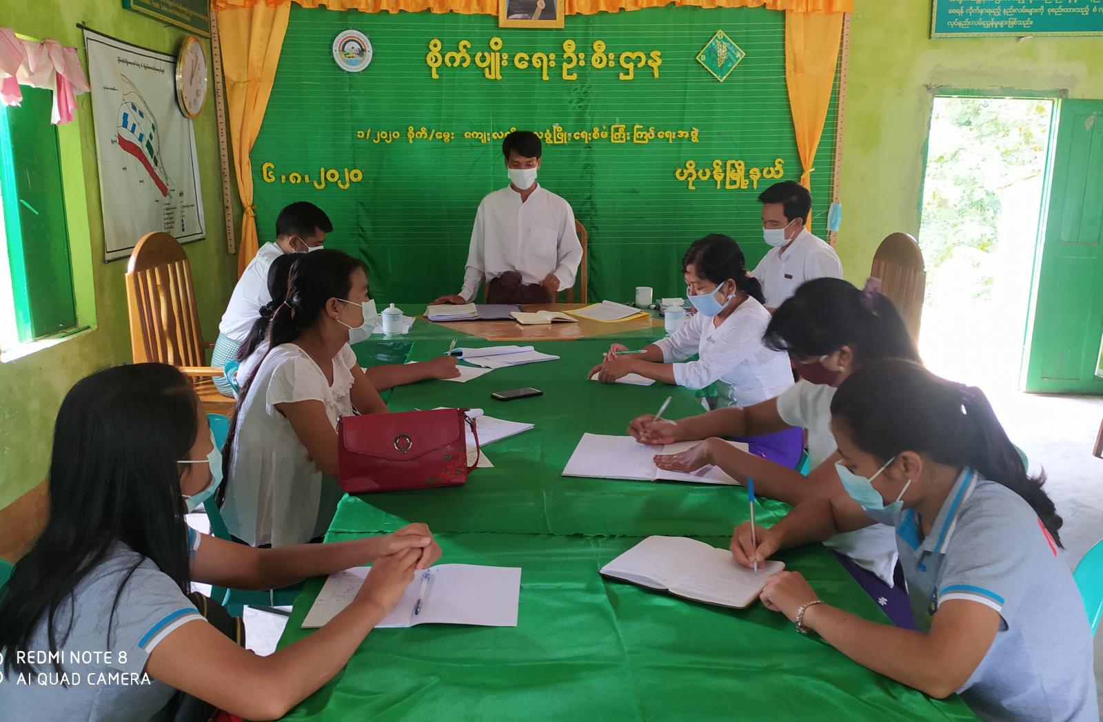 စိုက်ပျိုးရေးဦးစီးဌာန၊ မြို့နယ်ဦးစီးမှူး ဦးချိုလေးက အမှာစကားပြောကြားပြီး CERP အစီအစဉ်ဖြင့် စိုက်ပျိုးမျိုးစေ့ထုတ်ဧက (၃၀) စိုက်ပျိုးထားနိုင်မှု၊ ဘက်စုံအဆင့်မြှင့်နည်းပညာသုံး စံပြကျေးရွာတွင် စပါးနှင့် ပြောင်း ဧက(၁၀၀)စိုက်ပျိုးထားနိုင်မှု အခြေအနေ၊ GAP အသိ အမှတ်ပြု လက်မှတ်ရရှိရန် မြေဆီလွှာစစ်ဆေးပြီး စပါးဧက (၅၀)၊ ပြောင်းဧက(၅၀)၊ “ ၀ ” ဥ ဧက(၅၀)၊ ယာစပါးဧက (၃၀၀) စုစုပေါင်း (၄၅၀)ဧက စိုက်ပျိုး ထားနိုင်မှု အခြေအနေတို့ကို ရှင်းလင်းဆွေးနွေးခဲ့သည်။