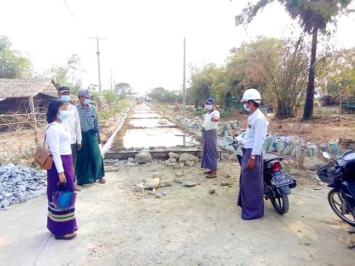 ရန်ကုန်တိုင်းဒေသကြီး တောင်ပိုင်းခရိုင် သုံးခွမြို့နယ် ကျေးလက်ဒေသဖွံ့ဖြိုး တိုးတက်ရေးဦးဌာနမှ ကျေးလက် နေပြည်သူများ အလုပ်အကိုင်အခွင့်အလမ်းရရှိ၍ မိသားစု၀င်ငွေ တိုးပွားကာ လူမှုစီးပွားဘ၀ဖွံ့ဖြိုးတိုးတက် စေရန်ရည်ရွယ်၍ မြစိမ်းရောင်ကျေးရွာ စီမံကိန်းအတိုးရငွေဖြင့် ကျေးရွာဖွံ့ဖြိုးတိုးတက်ရေးလုပ်ငန်းများ ဆောင်ရွက်လျက်ရှိရာ ယမန်နေ့ မွန်းလွဲပိုင်းက လက်ပန်ချောင် ကျေးရွာနှင့် မှိုကုန်းသာကျေးရွာ ကွန်ကရစ်လမ်းခင်းခြင်းလုပ်ငန်း အားစံချိန်စံညွှန်းမှန်ကန်တိကျ မှုရှိမရှိကွင်းဆင်း စစ်ဆေးခဲ့ကြောင်း သိရသည်။