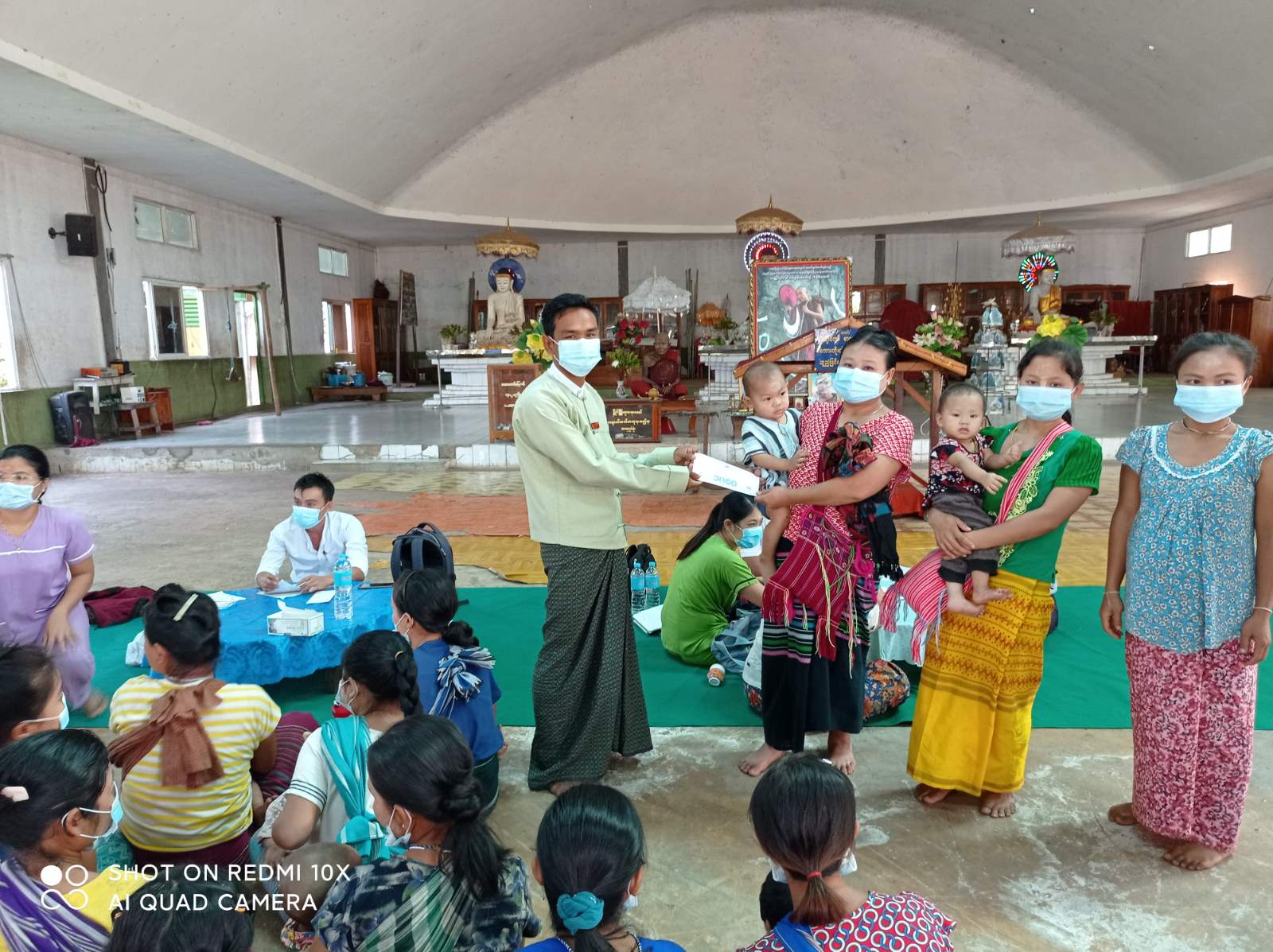 ကရင်ပြည်နယ်၊ ဘားအံခရိုင်၊ ရှမ်းရွာသစ်မြို့တွင် ၂၀၂၀-၂၀၂၁ ဘဏ္ဍာရေးနှစ် ၊ ပထမသုံးလပတ်အ တွက် ကိုယ်ဝန်ဆောင်မိခင်နှင့်၎င်းတို့မှ မွေးဖွားလာသော အသက်(၂)နှစ်အောက်ကလေးငယ်များ ထောက် ပံ့ငွေများပေးအပ်ခြင်းကို ယမန်နေ့က မြိုင်ကြီးငူအထူးဒေသရှိ အေးလင်းမြတ်ရှင်တိုက်ပွဲရှောင်စခန်းတွင် တာဝန်ရှိသူတို့က လက်ဝယ်အရောက် ထောက်ပံ့ပေးအပ်ခဲ့ကြောင်းသိရှိရသည်။