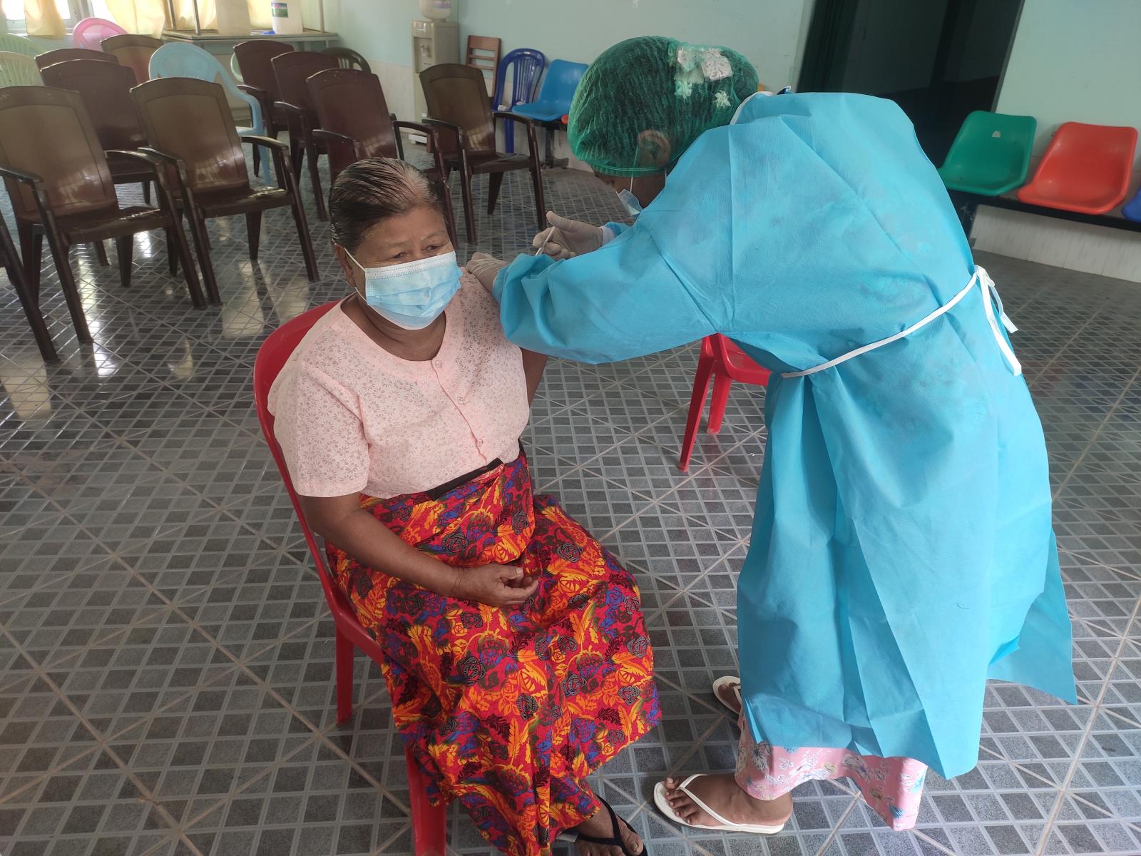ကာကွယ်ဆေးများထိုးနှံရာတွင် မြို့နယ်ကုသရေးဦးစီးဌာနမှူး ဒေါက်တာအေးလွင်မှ ဦးဆောင်၍ ကျန်းမာရေး ဝန်ထမ်းများက ထိုးနှံပေးလျက်ရှိပြီး မြို့နယ်စီမံအုပ်ချုပ်ရေးအဖွဲ့ဥက္ကဋ္ဌ ဦးကောင်းမြတ်ထွန်း၊ ဗိုလ်မှူးပြည့်ဖြိုးအောင်နှင့် အဖွဲ့ဝင်များ၊ ဒုတိယ မြို့နယ်အုပ်ချုပ်ရေးမှူး ဦးဝင်းဝင်းစိုးတို့က ကြည့်ရှုအားပေးခဲ့ကြသည်။