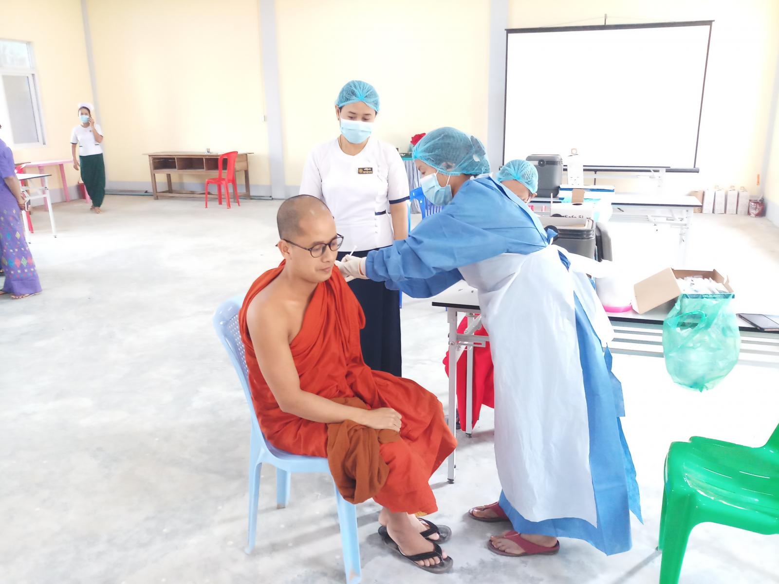 အဆိုပါ ကိုဗစ်-၁၉ ရောဂါကာကွယ်ဆေး ပထမအကြိမ် စတင်ထိုးနှံခြင်းအား ခရိုင်ပြည်သူ့ ဆေးရုံကြီးတွင် စုရပ်အဖြစ် စတင်ထိုးနှံရာ ခရိုင်ပြည်သူ့ကျန်းမာရေးဦးစီးဌာန၊ ခရိုင်ဆေးရုံအုပ်ကြီး ဒေါက်တာ ခင်မောင်သန်း ဦးဆောင်သော ကျန်းမာရေးဝန်ထမ်းများက ကာကွယ်ဆေးလာရောက် ထိုးနှံကြသည့် မြို့နယ်အတွင်းရှိ ဆရာတော် သံဃာတော် (၆၃) ပါးတို့အား ကိုယ်အပူချိန်တိုင်းတာပေးခြင်း၊ သွေးပေါင်ချိန်တိုင်းတာပေးခြင်းများအား ဆောင်ရွက်ပေးခဲ့ကြောင်းနှင့် ပုံမှန်အနေအထားရောက်မှသာ စနစ်တကျ ကာကွယ်ဆေး စတင်ထိုးနှံပေးကြောင်း သိရှိရသည်။
