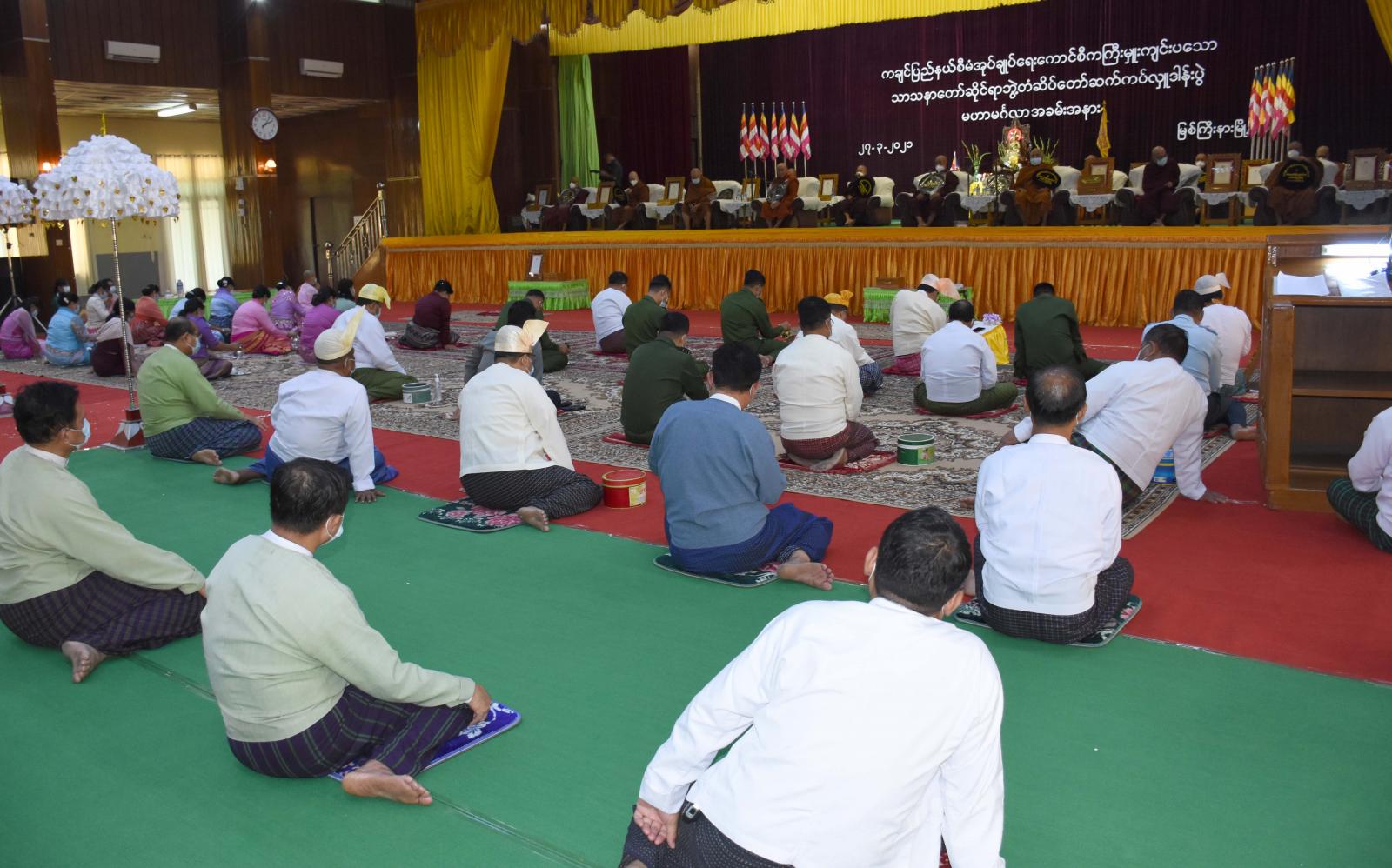ကချင်ပြည်နယ် စီမံအုပ်ချုပ်ရေးကောင်စီက ကြီးမှူးကျင်းပသော ၂၀၂၁ ခုနှစ်၊ သာသနာတော် ဆိုင်ရာ ဘွဲ့တံဆိပ်တော် ဆက်ကပ်လှူဒါန်းပွဲ မဟာမင်္ဂလာအခမ်းအနားကို ယမန်နေ့ (သာသနာတော် နှစ် ၂၅၆၄၊ ကောဇာသက္ကရာဇ် ၁၃၈၂ ခုနှစ်၊ တပေါင်းလပြည့်နေ့) မွန်းလွဲ ၁ နာရီတွင် မြစ်ကြီးနားမြို့၊ မြို့တော်ခန်းမ၌ ကျင်းပသည်။