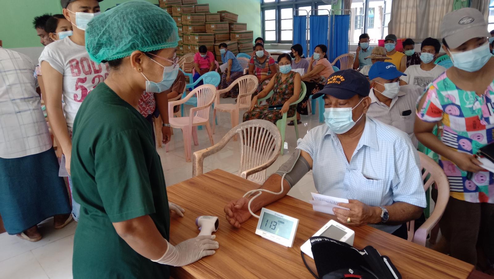 ထိုသို့ ကိုဗစ်-၁၉ ရောဂါ ကာကွယ်ဆေးထိုးနှံခြင်းဆောင်ရွက်ရာတွင် ဆေးထိုးမည့်သူများအား ကနဦး ကိုယ်အပူချိန် တိုင်းတာခြင်း၊ သွေးပေါင်ချိန်ခြင်း၊ ကျန်းမာရေး စစ်ဆေးပေးခြင်းတို့ကို ဆောင်ရွက်စေပြီး ကျန်းမာရေး ကောင်းမွန်သူများအား ကာကွယ်ဆေးထိုးနှံခြင်းကို ကျန်းမာရေးနှင့် အားကစားဝန်ကြီးဌာန၏ လမ်းညွှန်ချက်များနှင့်အညီ ပြုလုပ်ပေးလျက်ရှိသည်။