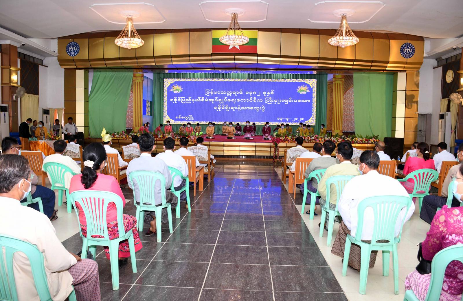 ရခိုင်ပြည်နယ်စီမံအုပ်ချုပ်ရေးကောင်စီက ကြီးမှူးကျင်းပသော ရခိုင်ရိုးရာနံ့သာသွေးပွဲကို ယနေ့နံနက်ပိုင်းတွင် စစ်တွေမြို့၊ ဦးဥတ္တမခန်းမ၌ ကျန်းမာရေးနှင့် အားကစားဝန်ကြီး ဌာန၏ ကိုဗစ်-၁၉ ရောဂါကာကွယ်ရေးညွှန်ကြားချက်များနှင့်အညီ ကျင်းပသည်။