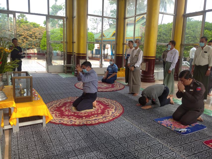 ရှေးဦးစွာ ပဲခူးတိုင်းဒေသကြီး စီမံအုပ်ချုပ်ရေးကောင်စီဥက္ကဋ္ဌနှင့် အဖွဲ့ဝင်များသည် ရွှေမော်ဓောစေတီတော်မြတ်ကြီး မြောက်ဘက်မုခ်တန်ဆောင်းအတွင်းရှိ ဗုဒ္ဓမြတ်စွာဘုရားများကို ပန်း၊ ဆီမီး၊ သောက်တော်ရေချမ်းများ ကပ်လှူပူဇော်ခြင်း၊ ဗုဒ္ဓမြတ်စွာဘုရားများအား ရွှေသင်္ကန်းများ ဆပ်ကပ်လှူဒါန်း ကုသိုလ်ယူခဲ့ကြသည်။