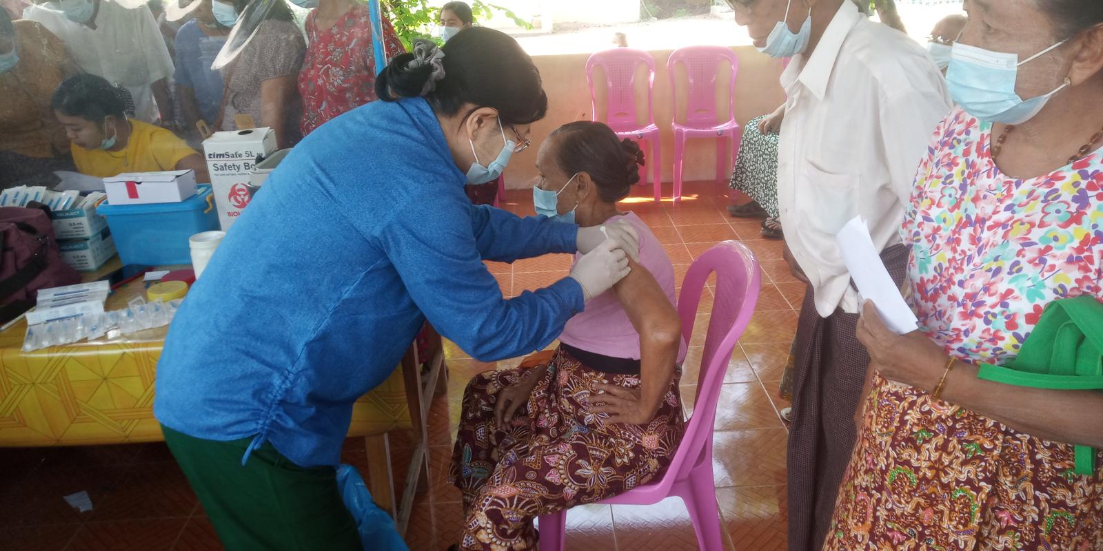 ကာကွယ်ဆေးမထိုးမီ ရောဂါစမ်းသပ်ရာနေရာတွင် သွေးပေါင်ချိန်တိုင်းခြင်း၊ အဖျားတိုင်းခြင်းတို့အား ဆောင်ရွက်ပြီးမှ ကာကွယ်ဆေးထိုးနှံပေးခြင်းနှင့် ရောဂါလက္ခဏာစောင့်ကြည့်ရာနေရာတွင် ဆေးထိုးပြီး ထူးခြားမှု ရှိ/မရှိကို မိနစ် ၃၀ ခန့် စောင့်ကြည့်ခြင်းတို့ကို ဆောင်ရွက် ပေးခဲ့ပြီး ယင်းသို့ ဆောင်ရွက်နေမှုတို့ကို မြို့နယ်အုပ်ချုပ်ရေးမှူး ဦးသန်းဌေးနှင့် မြို့နယ်ပြည်သူ့ကျန်းမာရေးဦးစီးဌာနမှူး ဒေါက်တာမို့မို့ခိုင်တို့ကကြီးကြပ် ဆောင်ရွက်ခဲ့ကြကြောင်း သိရသည်။