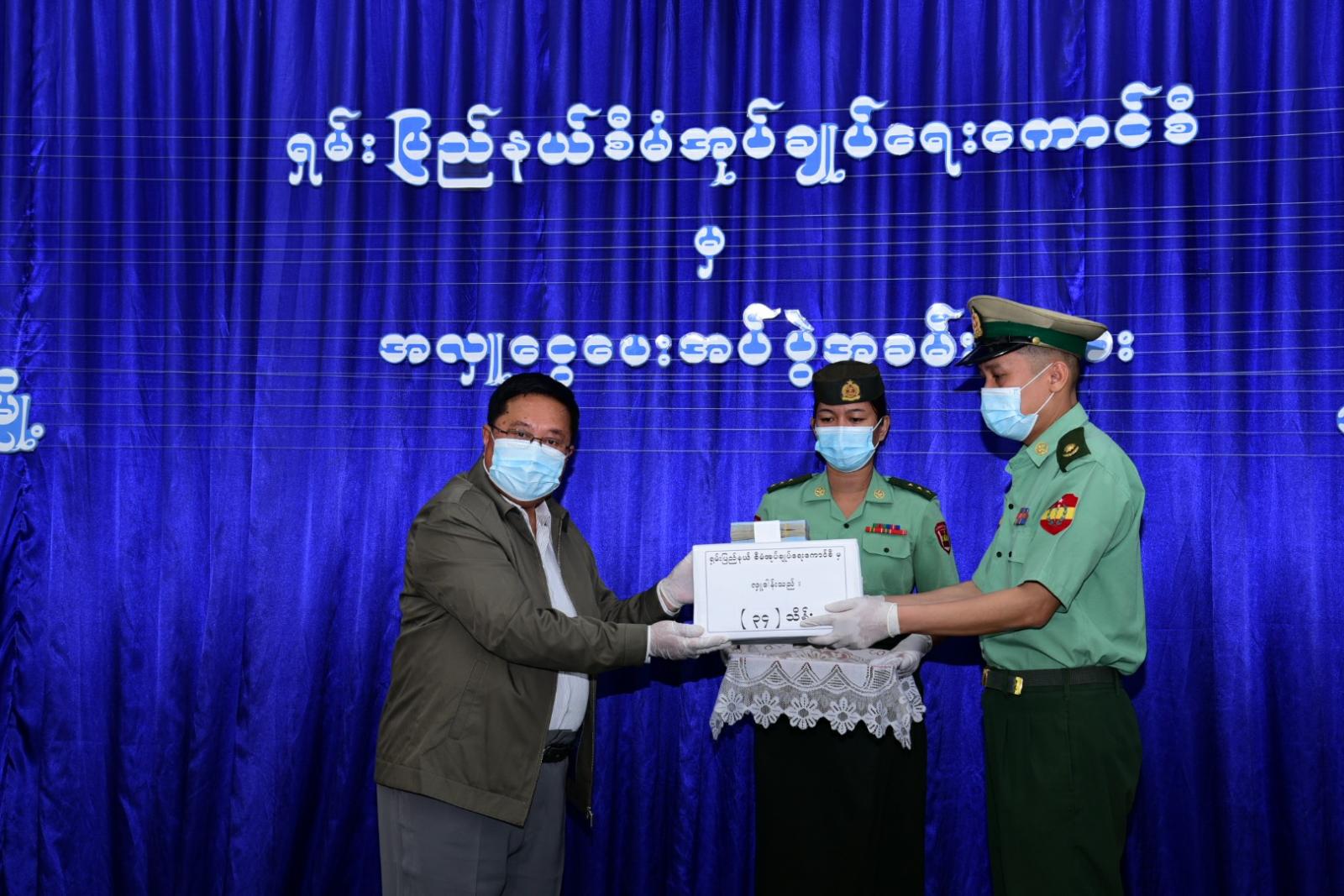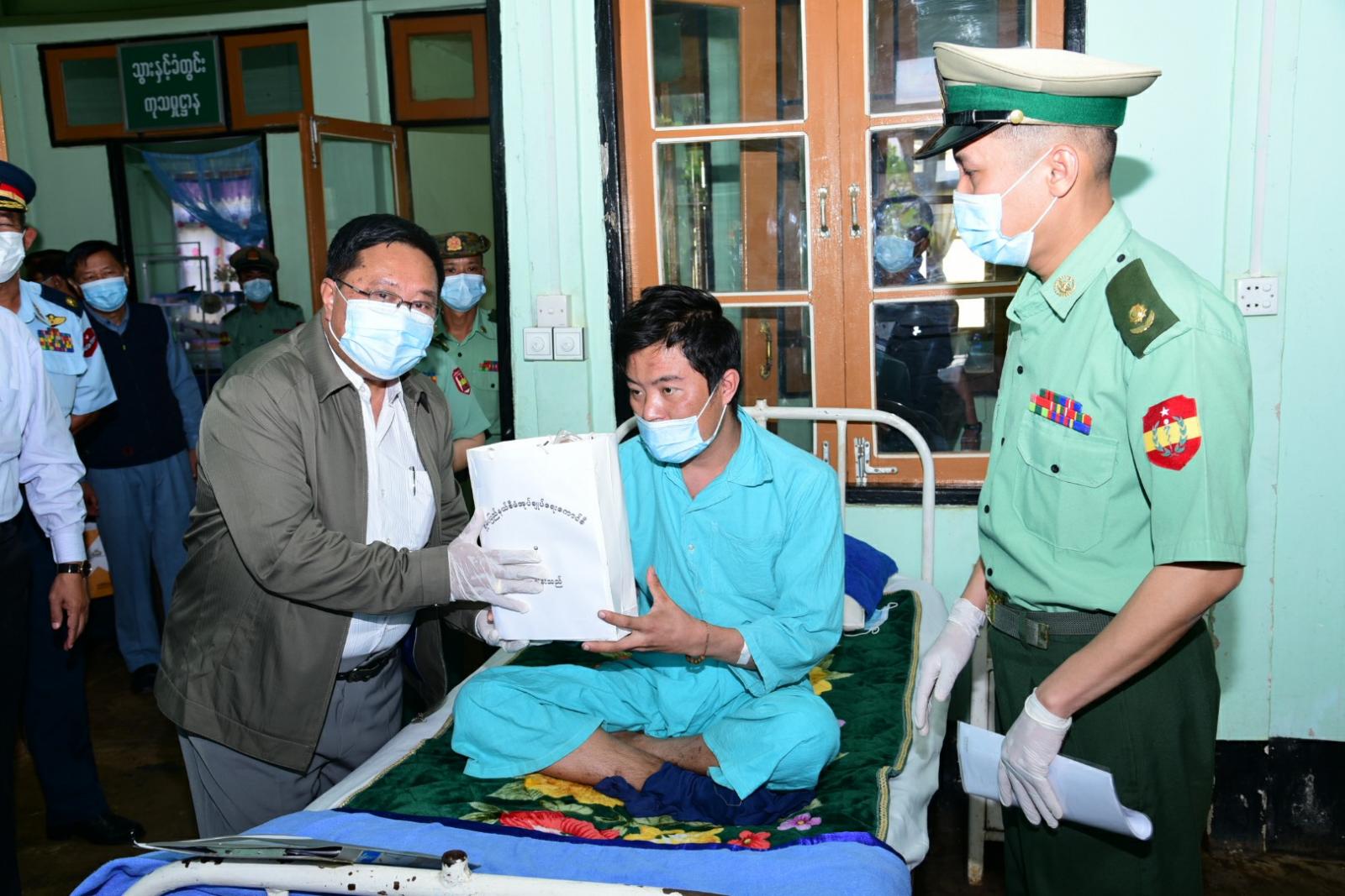 ဆက်လက်၍ ပြည်နယ်စီမံအုပ်ချုပ်ရေးကောင်စီ ဥက္ကဋ္ဌဒေါက်တာကျော်ထွန်း၊ အရှေ့ အလယ်ပိုင်းတိုင်း စစ်ဌာနချုပ်တိုင်းမှူးဗိုလ်မှူးချုပ်နိုင်နိုင်ဦး၊ ပြည်နယ်စီမံအုပ်ချုပ်ရေးကောင်စီအ ဖွဲ့ဝင်များ၊ အတွင်းရေးမှူးနှင့် တာဝန်ရှိ တို့သည်နမ့်စန်အမှတ်(၈)တပ်မတော် စစ်ဆေးရုံခုတင် (၁၀၀)သို့ သွားရောက်ကာ အလှူငွေများ ပေးအပ်ရာ ပြည်နယ်စီမံအုပ်ချုပ်ရေးကောင်စီဥက္ကဋ္ဌ ဒေါက်တာကျော်ထွန်းကအဖွင့်အမှာစကား ပြောကြားပြီး ရှမ်းပြည်နယ်စီမံအုပ်ချုပ်ရေးကောင်စီမှ အလှူငွေကျပ်(၃၄)သိန်းနှင့်နမ့်စန်မြို့အမှတ်(၈)တပ်မတော် ဆေးရုံခုတင်(၁၀၀)ရှိ အရာရှိ/စစ်သည်/ အရပ်သားဝန်ထမ်းများအား ချီးမြှင့်ငွေများကို ပြည်နယ်စီမံအုပ်ချုပ်ရေး ကောင်စီ ဥက္ကဋ္ဌဒေါက်တာ ကျော်ထွန်းမှပေးအပ်ရာ နမ့်စန်အမှတ်(၈)တပ်မတော် ဆေးရုံခုတင်(၁၀၀)တပ်မှူးမှ လက်ခံရယူပြီး ဂုဏ်ပြုမှတ်တမ်းလွှာပြန် လည်ပေးအပ်ကာကျေးဇူးတင်စကား ပြန်လည်ပြောကြား၍ ပြည်နယ် စီမံအုပ်ချုပ်ရေး ကောင်စီဥက္ကဋ္ဌ၊အရှေ့အလယ်ပိုင်းတိုင်းတိုင်းမှူး၊ပြည်နယ်စီမံ အုပ်ချုပ်ရေးကောင်စီ အဖွဲ့ဝင်များ၊ အတွင်းရေးမှူးနှင့် တာဝန်ရှိသူတို့က ဆေးရုံတွင်လာရောက် ဆေးကုသနေသော လူနာများအား သွားရောက်ကြည့်ရှူကာ စားစရာနှင့်ထောက်ပံ့ငွေများ ပေးအပ်ခဲ့ကြကြောင်း သိရသည်။