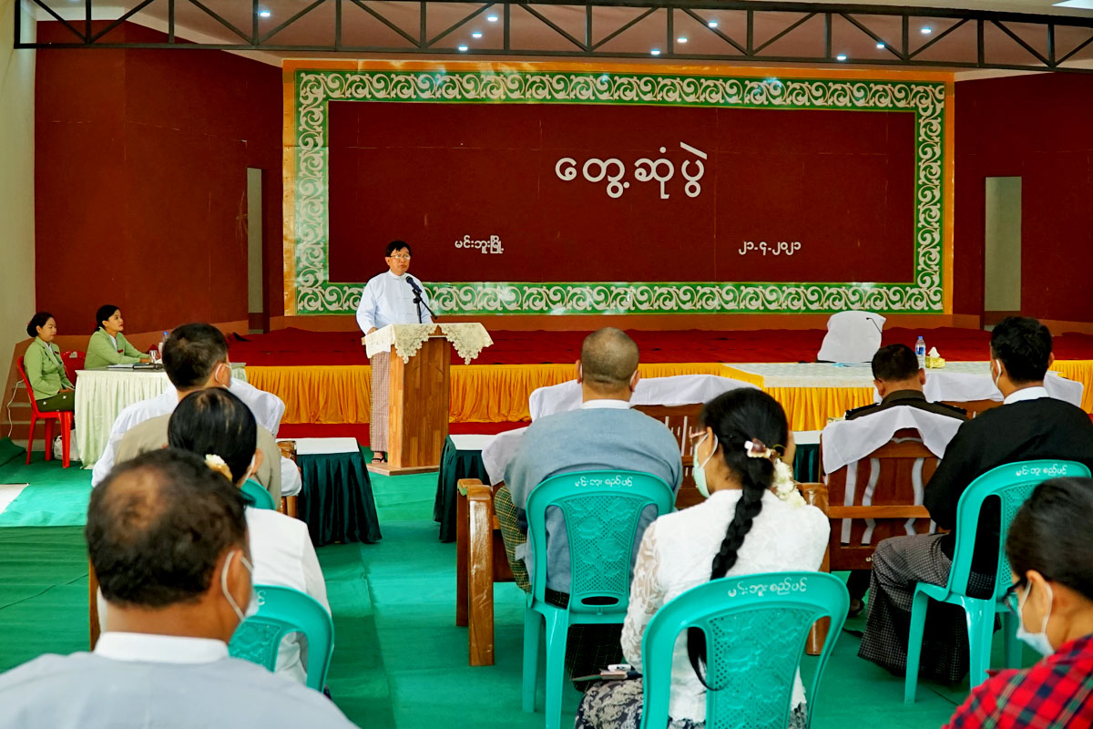 မကွေးတိုင်းဒေသကြီး စီမံအုပ်ချုပ်ရေးကောင်စီဥက္ကဋ္ဌ ဦးတင့်လွင်နှင့် မင်းဘူးခရိုင်/မြို့နယ် စီမံအုပ်ချုပ်ရေးအဖွဲ့၊ မင်းဘူးခရိုင်/ မြို့နယ်အဆင့်ဌာနဆိုင်ရာများ တွေ့ဆုံပွဲအခမ်းအနားကို ဧပြီလ ၂၁ ရက်နေ့ နံနက် ၉ နာရီက မင်းဘူးမြို့ မြို့နယ်ခန်းမ၌ ကျင်းပခဲ့သည်။