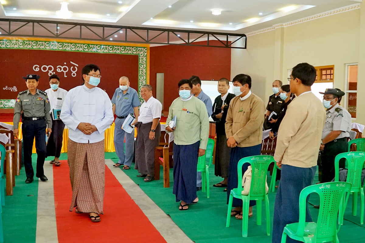 ဆက်လက်ပြီး တိုင်းဒေသကြီးစီမံအုပ်ချုပ်ရေးအဖွဲ့ဝင် တိုင်းဒေသကြီးရဲတပ်ဖွဲ့မှူး ရဲမှူးကြီး လှိုင်တင့်က နယ်မြေလုံခြုံရေးနှင့် တရားဥပဒေစိုးမိုးရေးဆိုင်ရာ ကိစ္စရပ်များဆောင်ရွက်နေမှု အခြေအနေများနှင့် ပတ်သက်၍ ဆွေးနွေးမှာကြားပြီး၊ မြို့နယ်စီမံ အုပ်ချုပ်ရေးအဖွဲ့ ဥက္ကဋ္ဌ ဦးသိန်းဇော်ကံက မင်းဘူး(စကု)မြို့နယ် အုပ်ချုပ်ရေး၊ စီးပွားရေး၊ လူမှုရေး ဒေသဆိုင်ရာ အချက် အလက်များအားရှင်းလင်းတင်ပြရာ တိုင်းဒေသကြီးစီမံအုပ်ချုပ်ရေးကောင်စီဥက္ကဋ္ဌက ရှင်လင်း တင်ပြမှုများအပေါ် လိုအပ်သည်များ ဖြည့်စွက်လမ်းညွှန်မှာကြားခဲ့သည်။
