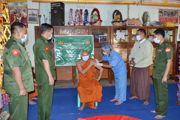 ကိုဗစ်-၁၉ ရောဂါ ကာကွယ်ဆေးထိုးခြင်းကို အခြေချစစ်ဗျူဟာအဖွဲ့(တန့်ယန်း)မှ စစ်ဗျူဟာမှူးကြီး ဗိုလိမှူးကြီးခွန်အောင်သွင်နှင့် နယ်မြေခံတပ်နယ်မှ အရာရှိကြီးများ၊ မြို့နယ်စီမံအုပ်ချုပ်ရေးအဖွဲ့ ဥက္ကဌ မြို့နယ်အုပ်ချုပ်ရေးမှူး ဦးသက်လွင်ထွန်းနှင့် တာဝန်ရှိ ဌာနဆိုင်ရာအကြီးအကဲများ ကြီးကြပ်ကာ အမှတ်(၃) တပ်မတော်ဆေးရုံ (ခုတင်-၂၅)မှ ဆရာဝန်နှင့် သူနာပြုများတို့က ကျောင်းတိုက်အသီးသီးမှ ဆရာတော်ကြီး များ၊ သံဃာတော် အရှင်သူမြတ်များအား ကျန်းမာရေးစစ်ဆေးပေးခြင်းနှင့် ကိုဗစ်-၁၉ ရောဂါ ကာကွယ်ဆေး ဒုတိယအကြိမ်ကို ထိုးနှံပေးခဲ့ကြကြောင်း သိရသည်။