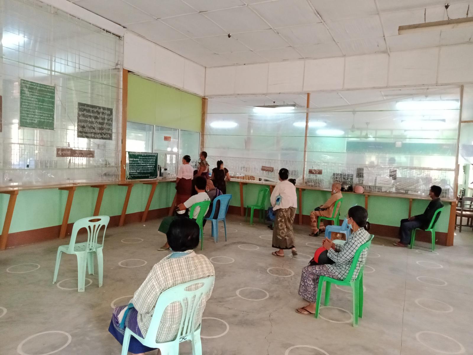 အငြိမ်းစားပင်စင်လစာများ ထုတ်ပေးမှုနှင့်ပတ်သက်၍ မြို့နယ်မြန်မာ့စီးပွားရေးဘဏ်မှ တာဝန်ရှိသူ တစ်ဦးက “အငြိမ်းစားပင်စင်လစာကို ဧပြီ(၂၁)ရက်နေ့မှ စတင်၍ နေ့စဉ်နံနက်(၇)နာရီမှ ညနေ (၃)နာရီအထိထုတ်ပေးခြင်းဖြစ်ကြောင်း၊ ပင်စင်လစာများ ထုတ်ပေးရာတွင် ကျန်းမာရေးနှင့်အားကစား ဝန်ကြီးဌာန၏ လမ်းညွှန်ချက်များနှင့်အညီ ကိုဗစ်-၁၉ရောဂါကြိုတင်ကာကွယ်ရေးနှင့် လူစုလူဝေးမဖြစ်ပေါ် စေရေးအတွက် ပင်စင်စား မိဘပြည်သူများအား သတ်မှတ်ရက်များဖြင့် ထုတ်ပေးလျက်ရှိကြောင်းနှင့် ယနေ့နံနက်ပိုင်းတွင်လည်း မြို့ပေါ်ရပ်ကွက်များရှိ ပင်စင်စားမိဘပြည်သူများအားပင်စင်လစာများ ဆက်လက် ထုတ်ပေးလျက်ရှိကြောင်း”ပြောကြားသည်။