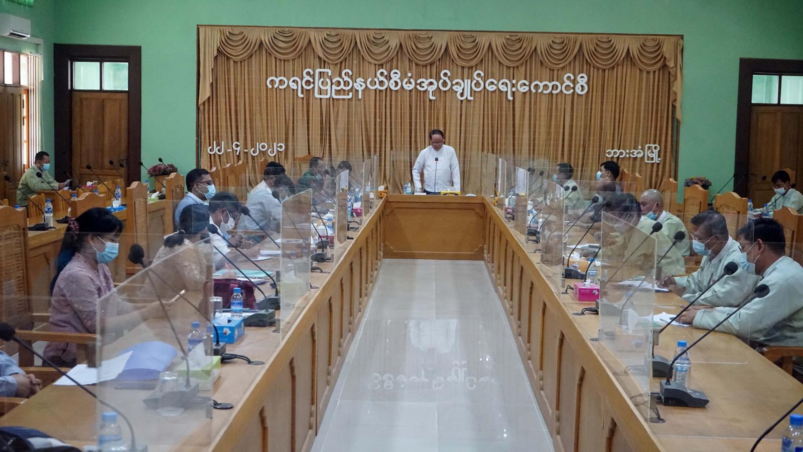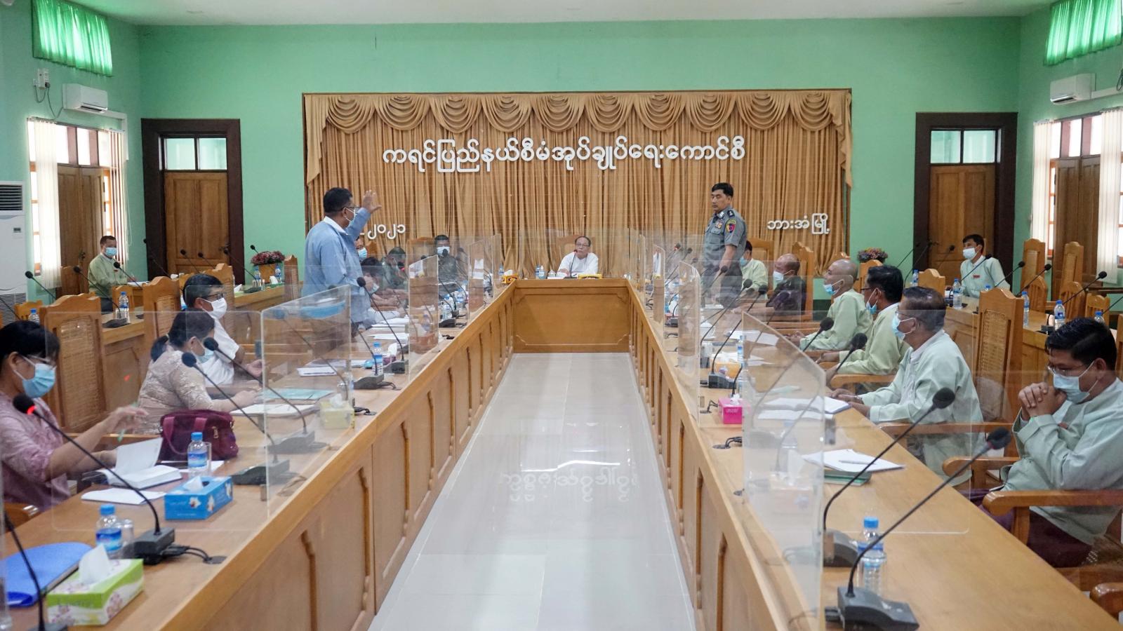 ကရင်ပြည်နယ်အတွင်း ကိုဗစ်-၁၉ ဆိုင်ရာ ထိန်းချုပ်ရေးနှင့် ပြည်နယ်၊ ခရိုင်၊ မြို့နယ်များရှိ ဆေးရုံများ ရာနှုန်းပြည့် ပြန်လည်ဖွင့်လှစ်နိုင်ရေး လုပ်ငန်းညှိနှိုင်း အစည်းအဝေးကို ယမန်နေ့ မွန်းလွဲ ၁ နာရီက ပြည်နယ်စီမံ အုပ်ချုပ်ရေးကောင်စီရုံး အစည်းအဝေးခန်းမ(၂)၌ ကျင်းပသည်။