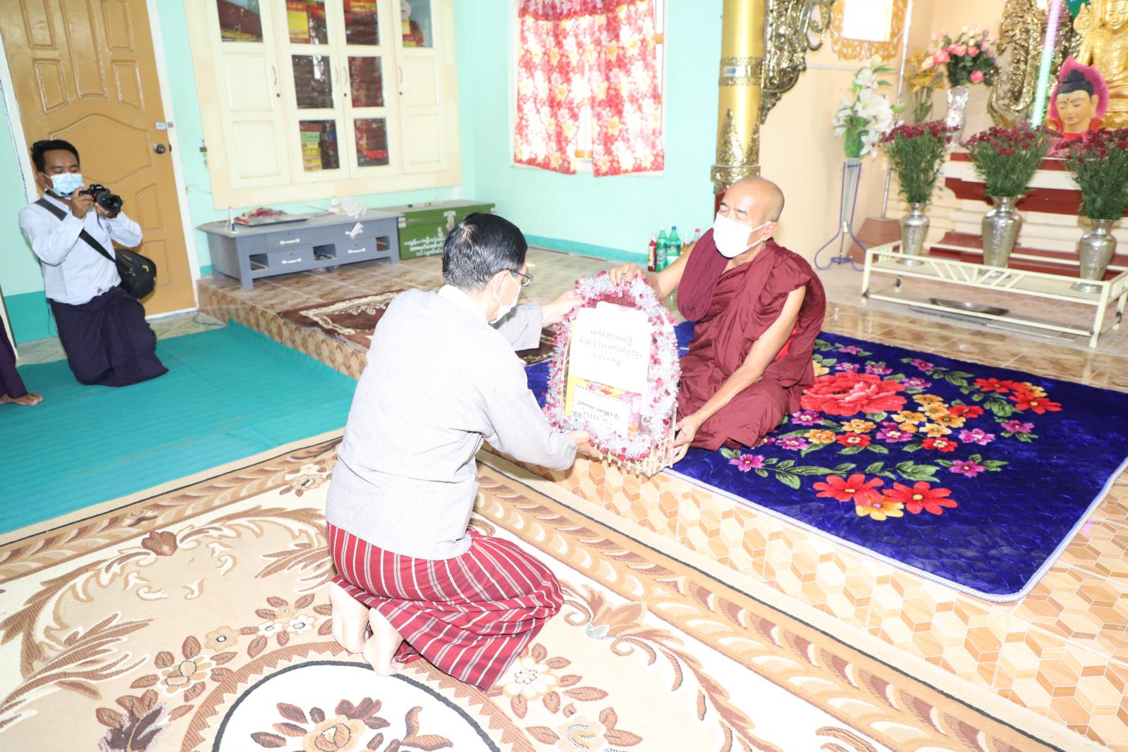 ၂၀၂၁ ခုနှစ်၊ သာသနာတော်ဆိုင်ရာဘွဲ့တံဆိပ်တော်များ ဆက်ကပ်လှူဒါန်းပွဲအခမ်းအနား ကျင်းပနိုင်ရေးအတွက် လုပ်ငန်း ညှိနှိုင်းအစည်းအဝေးကို ယနေ့ နံနက်(၁၀)နာရီ က စစ်ကိုင်းတိုင်းဒေသကြီးစီမံအုပ်ချုပ်ရေးကောင်စီ အစည်းအဝေးခန်းမ၌ ပြုလုပ်ရာ စစ်ကိုင်းတိုင်းဒေသကြီးစီမံအုပ်ချုပ်ရေးကောင်စီ ဥက္ကဋ္ဌ ဦးမောင်မောင်လင်းက အမှာစကားပြောကြားသည်။
