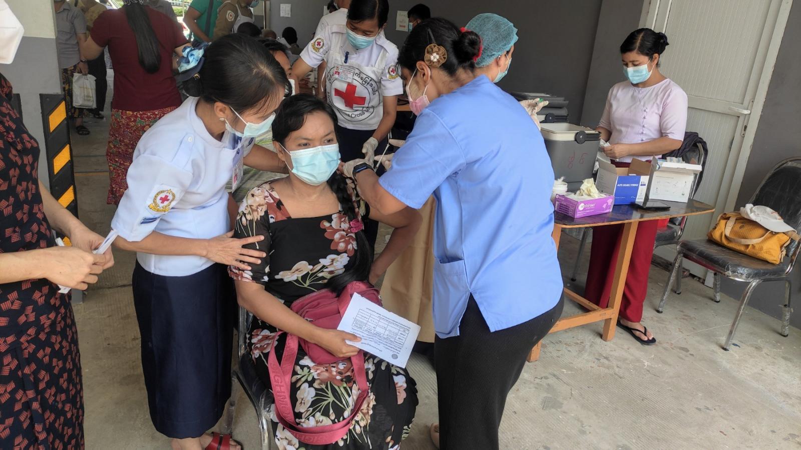 ကာကွယ်ဆေးထိုးနှံခြင်းကို ဦးစားပေးအုပ်စုလိုက် ခွဲခြားထားပြီး ယခုတစ်ကြိမ် ထိုးပေးသူများမှာ အသက်(၆၅)နှစ်အထက် သက်ကြီး အဖိုးအဖွားများနှင့် နိုင်ငံ့ဝန်ထမ်းများကို ဒုတိယအကြိမ်အဖြစ် ဧပြီလ ၂၀ ရက်နေ့မှ ၂၈ ရက်နေ့ထိ နေ့စဉ် နံနက် ၉ နာရီမှ ညနေ ၃ နာရီထိ လူဦးရေအကန့်အသတ်မရှိ မြို့နယ်ကျန်းမာရေးဌာနဝန်ထမ်းများနှင့် ကြက်ခြေနီတပ်ဖွဲ့ဝင်များမှ ထိုးနှံပေးလျက်ရှိသည်။