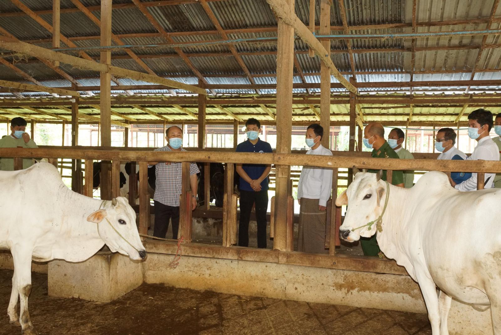 ထို့နောက် နေပြည်တော်ကောင်စီဥက္ကဋ္ဌနှင့် အဖွဲ့ဝင်များက မွေးမြူရေးခြံအတွင်း နို့စားနွားများမွေးမြူထားရှိမှု နှင့် နို့ထွက်ပစ္စည်းများ ထုတ်လုပ်နေမှုများကို လှည့်လည်ကြည့်ရှုရာ ဖန်ဟွ နို့စားနွားမွေးမြူရေးခြံ တာဝန်ခံ ဦးတွမ်ခင်ဝင်းက နို့စားနွားများ မွေးမြူရေးထားရှိမှုနှင့် ဒိန်ချဉ်နှင့် နို့ထုတ်လုပ်မှုအခြေအနေများကို မွေးမြူရေးခြံအတွင်း လိုက်လံရှင်းလင်းပြသရာ လိုအပ်သည်များကို မှာကြားခဲ့ကြောင်း သိရသည်။