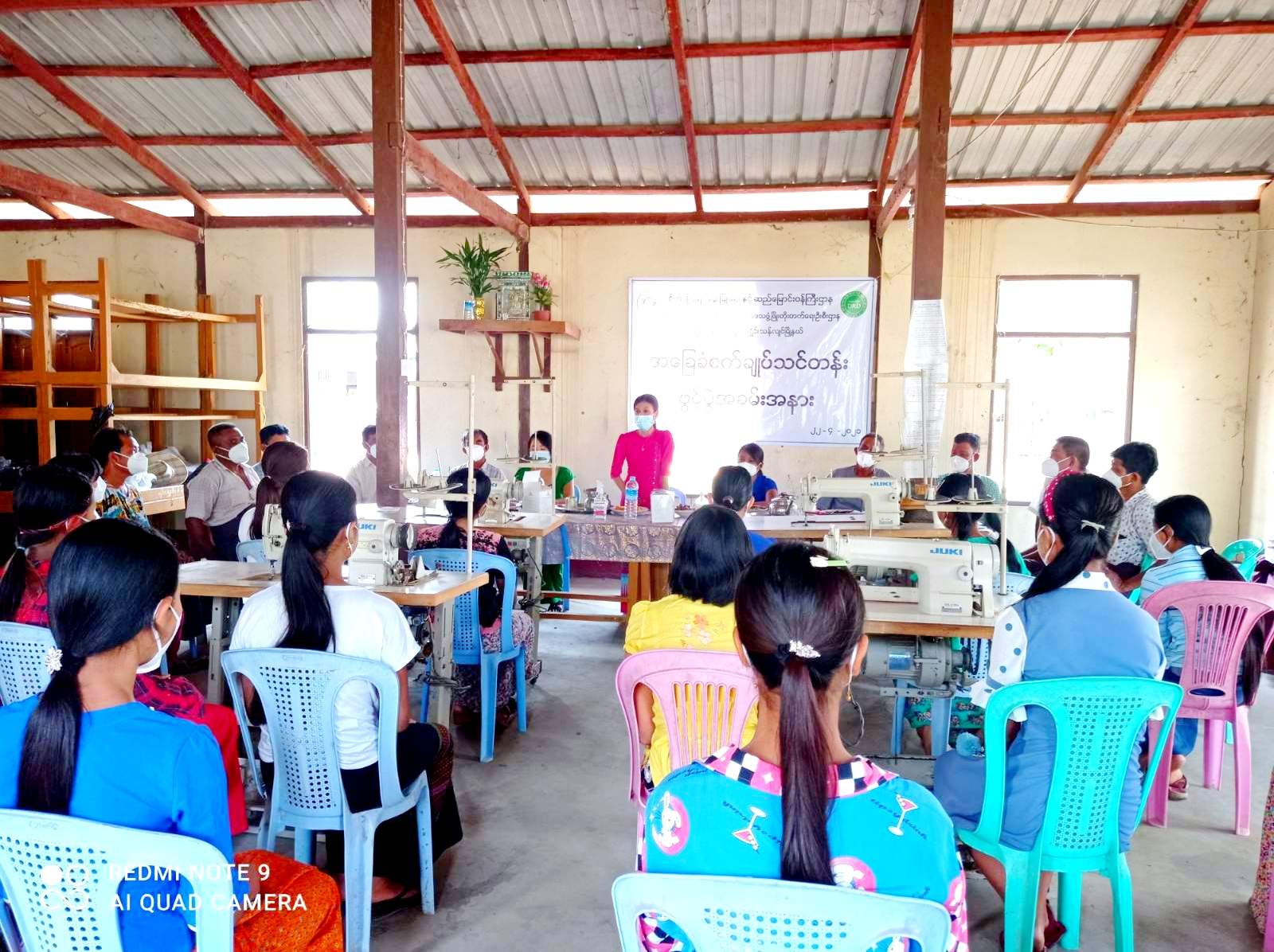 သင်တန်းဖွင့်ပွဲတွင် မြို့နယ်ကျေးလက်ဒေသဖွံ့ဖြိုးတိုးတက်ရေးဦးစီးဌာန မြို့နယ်ဦးစီးမှူး ဒေါ်ခင်နှင်းချိုက ကျေးလက်နေပြည်သူများ အလုပ်အကိုင်အခွင့်အလမ်းများ တိုးတက်ရရှိစေရန် ရည်ရွယ်၍ သန်လျင်မြို့နယ် အတွင်း အခြေခံ အပ်ချုပ်စက် သင်တန်းများ ဖွင့်လှစ်ပေးနေမှုတို့အား ရှင်းလင်းပြောကြားသည်။