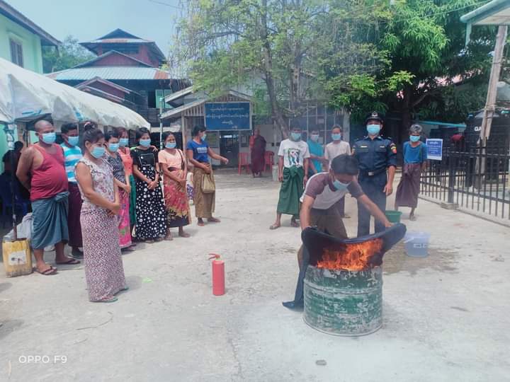 အဆိုပါ တိုက်ပွဲရှောင်စခန်းများတွင် မီးဘေးလုံခြုံစေရေးအတွက် မီးသတ် တပ်ဖွဲ့ဝင်များက အသိပညာပေးဟောပြောခြင်း၊မီးသတ်ဆေးဗူးဖြင့်အသုံးပြု၍ လက်တွေ့ မီးငြိမ်းသတ်ခြင်း၊ ဆီမီးလောင်မှုအား အဝတ်ဖြင့် ဖုံးအုပ်ငြိမ်းသတ်နည်း စသည့်တို့ကို ဇာတ်တိုက်သရုပ်ပြလေ့ကျင့် ဆောင်ရွက် ပေးကြကြောင်း သိရသည်။
