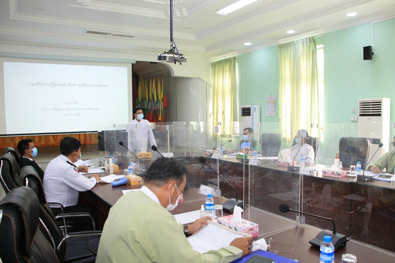 ထို့နောက် ပဲခူးတိုင်းဒေသကြီး ပြည်သူ့ကျန်းမာရေးဦးစီးဌာန၊ တိုင်းဒေသကြီးဦးစီးမှူး ဒေါက်တာသီဟက ပဲခူးတိုင်းဒေသကြီး အတွင်း မြို့နယ်အလိုက် ကိုဗစ်-၁၉ ရောဂါဖြစ်ပွားခဲ့မှု၊ စစ်ဆေးခဲ့မှု၊ ကျန်းမာရေး စောင့်ရှောက်မှုပေးခဲ့နိုင်ခြင်း အခြေအနေများနှင့် ကြိုတင်ကာကွယ်ရေးလုပ်ငန်းစဉ်များအား Power Point ဖြင့် အသေးစိတ်ရှင်းလင်းတင်ပြခဲ့ရာ၊ တက်ရောက်လာသည့် ပဲခူးတိုင်းဒေကြီး စီမံအုပ်ချုပ်ရေး ကောင်စီ အဖွဲ့ဝင်များက အကြုံပြုနွေးခဲ့ကြပြီး ပဲခူးတိုင်းဒေကြီး စီမံအုပ်ချုပ်ရေးကောင်စီဥက္ကဋ္ဌ ဦးမျိုးဆွေဝင်းက ကိုဗစ်-၁၉ ထိန်းချုပ်ရေးနှင့်အရေးပေါ်တုံ့ပြန်ရေး လုပ်ငန်းစဉ်များနှင့် ပတ်သက်၍ လိုအပ်သည်များ ဖြည့်စွက် လမ်းညွှန်မှာကြားခဲ့ကြောင်း သတင်းရရှိသည်။