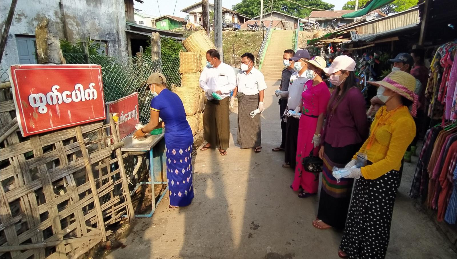 ဧရာဝတီတိုင်းဒေသကြီး၊ ပုသိမ်ခရိုင်၊ ငါးသိုင်းချောင်းမြို့၊ စည်ပင်သာယာမြို့မဈေး၌ ဧပြီလ ၂၇ ရက်နေ့ နံနက်ပိုင်းက ကိုဗစ်-၁၉ရောဂါ တတိယလှိုင်း ကူးဆက်ပြန့်ပွားခြင်းမရှိစေရေးအတွက် ဒေသခံပြည်သူများသို့ အသိပေးနှိုးဆော်ခြင်း၊ နေအိမ်ပြင်ပသို့ ထွက်ခွာတိုင်း (mask)နှာခေါင်းစည်း တပ်ဆင် ဆက်သွယ်သွားလာရေးနှင့် (mask)နှာခေါင်းစည်း နှင့်မျက်နှာကာ(face shield)များ အခမဲ့ ဖြန့်ဝေခြင်း၊ ဈေးအတွင်းတပ်ဆင်ထားရှိသည့် လက်ဆေးဘေဇင်များ၌ စနစ်တကျလက်ဆေးရေး လုပ်ငန်းများဆောင်ရွက်ခဲ့ပါသည်။