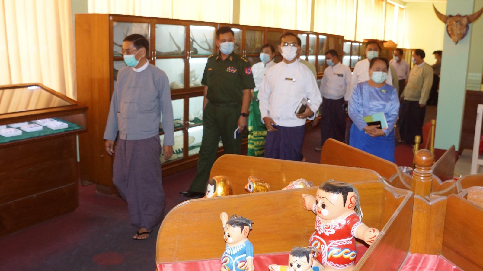 ယင်းနောက် အုန်းတောကျေးရွာ ပြည်ထောင်စုတိုင်းရင်းသားလူငယ်များ စွမ်းရည်ဖွံ့ဖြိုးရေးဒီဂရီကောလိပ်နှင့် ရွာသစ်ကြီး ပြည်ထောင်စုတိုင်းရင်းသားလူမျိုးများဖွံ့ဖြိုးရေးတက္ကသိုလ်ကျောင်းသို့ ရောက်ရှိရာ တာဝန်ရှိသူအကြီးအကဲများက ကြိုဆိုခဲ့ကြပြီး သက်ဆိုင်ရာအစည်းအဝေးခန်းမများ၌ ခေတ္တပါမောက္ခချုပ်နှင့် ကျောင်းအုပ်ကြီးတို့က ကျောင်းများ၏ အချက်အလက်နှင့် သမိုင်းအကျဉ်းတို့ကို ရှင်းလင်းတင်ပြခဲ့ကြပြီး ကျောင်းများရှိ စာကြည့်တိုက်များ၊ စာသင်ဆောင်များ၊ အိပ်ဆောင်နှင့် စားသောက်ဆောင်များကို လှည့်လည်ကြည့်ရှု စစ်ဆေးခဲ့ကြောင်းသိရသည်။