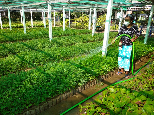 ပျိုးပင်များ ပျိုးထောင်ထားရှိပြီး အခမဲ့ဖြန့်ဝေခြင်းများနှင့်ပတ်သတ်၍ "ကျွန်တော်တို့ ဌာနအနေနဲ့ ဒေသတွင်းစိမ်းလန်းစိုပြေရေးနဲ့ ရာသီဥတုကောင်းမွန်မျှတစေရန်အတွက် ပြည်သူများ၏ နေအိမ်ခြံဝင်းများ၊ ဌာနဆိုင်ရာရုံးဝင်းအတွင်းများ၊ သာသနာ့နယ်မြေနေရာတွေမှာ စိုက်ပျိုးရန်အတွက် ကျွန်းပင် (၃၀၀၀)၊ လျှော်ဖြူပင် (၁၀၀၀)ထောင်၊ တမာပင်(၁၄၀၀၀)ထောင်၊ မယ်ဇလီပင်(၃၀၀၀)၊ မယ်ဇယ်ပင်(၇၅၀၀)၊ ရေတမာပင်(၆၀၀၀)၊ ၊စိန်ပန်းပင်(၄၀၀၀)၊ သစ်ဆိမ့်ပင်(၁၅၀၀)၊ ပင်လယ်ကဗွီပင်(၃၀၀၀)၊ ခရေပင်(၁၀၀၀)၊အာသောကပင်(၃၀၀၀)နှင့် ငုရွှေဝါပင်(၃၀၀၀)၊စုစုပေါင်း ပျိုးပင်အမျိုးအစား(၁၂)မျိုး၊ပျိုးပင်အရေအတွက်(၅)သောင်း ပျိုးထောင်ထားပြီး အခမဲ့ဖြန့်ဝေပေး သွားမည ်ဟု" မြို့နယ်သစ်တောဦးစီးဌာနမှ တာဝန်ရှိသူတစ်ဦးက ပြောပြသည်။