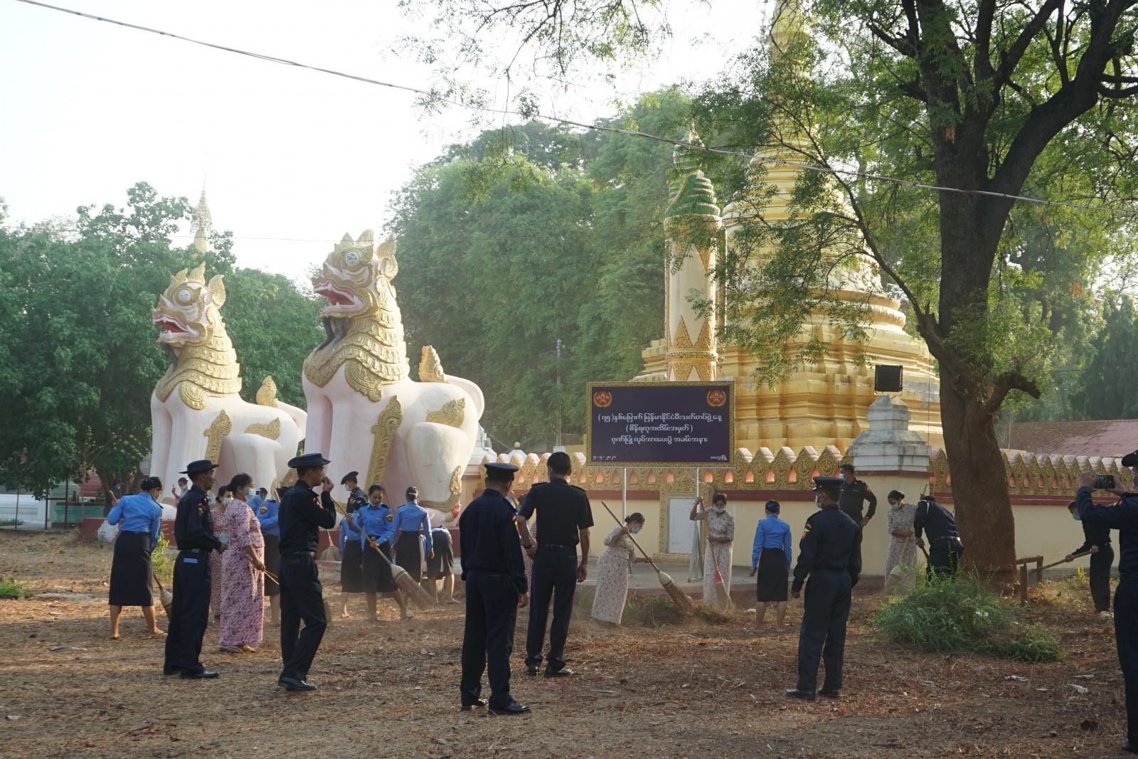 မေ ၅ ရက်နေ့တွင်ကျရောက်မည့်(၇၅)နှစ်မြောက် စိန်ရတုအထိမ်းအမှတ် မြန်မာနိုင်ငံမီးသတ်တပ်ဖွဲ့နေ့ အကြို ပြည်သူ့အကျိုးပြုလုပ်ငန်းအား ယနေ့ နံနက်(၇)နာရီအချိန်က မကွေး တိုင်းဒေသကြီးမီးသတ်ဦးစီးမှူး ညွှန်ကြားရေးမှူး ဦးမျိုးလှိုင် ဦးဆောင်၍ သန္ဓေ / အရန်မီးသတ်တပ်ဖွဲ့ဝင် အင်အား(၁၀၀)ဦးဖြင့် မကွေးမြို့၊ လေးထပ်ကျောင်းတိုက် ဘုန်းတော်ကြီးကျောင်းဝင်းအတွင်း၌ စုပေါင်း သန့်ရှင်းရေးပြုလုပ်ခြင်း၊ ဘုရား ရင်ပြင်တော် ရေသပ္ပာယ်ခြင်းလုပ်ငန်းများကို ကျန်းမာရေးနှင့်အားကစား ဝန်ကြီးဌာနမှသတ်မှတ်ထားသည့် Covid - 19 စည်းကမ်းချက်များနှင့်အညီ အင်အား ( ၅၀ ) ဦးစီခွဲခြား၍ ဆောင်ရွက်ခဲ့ကြသည်။