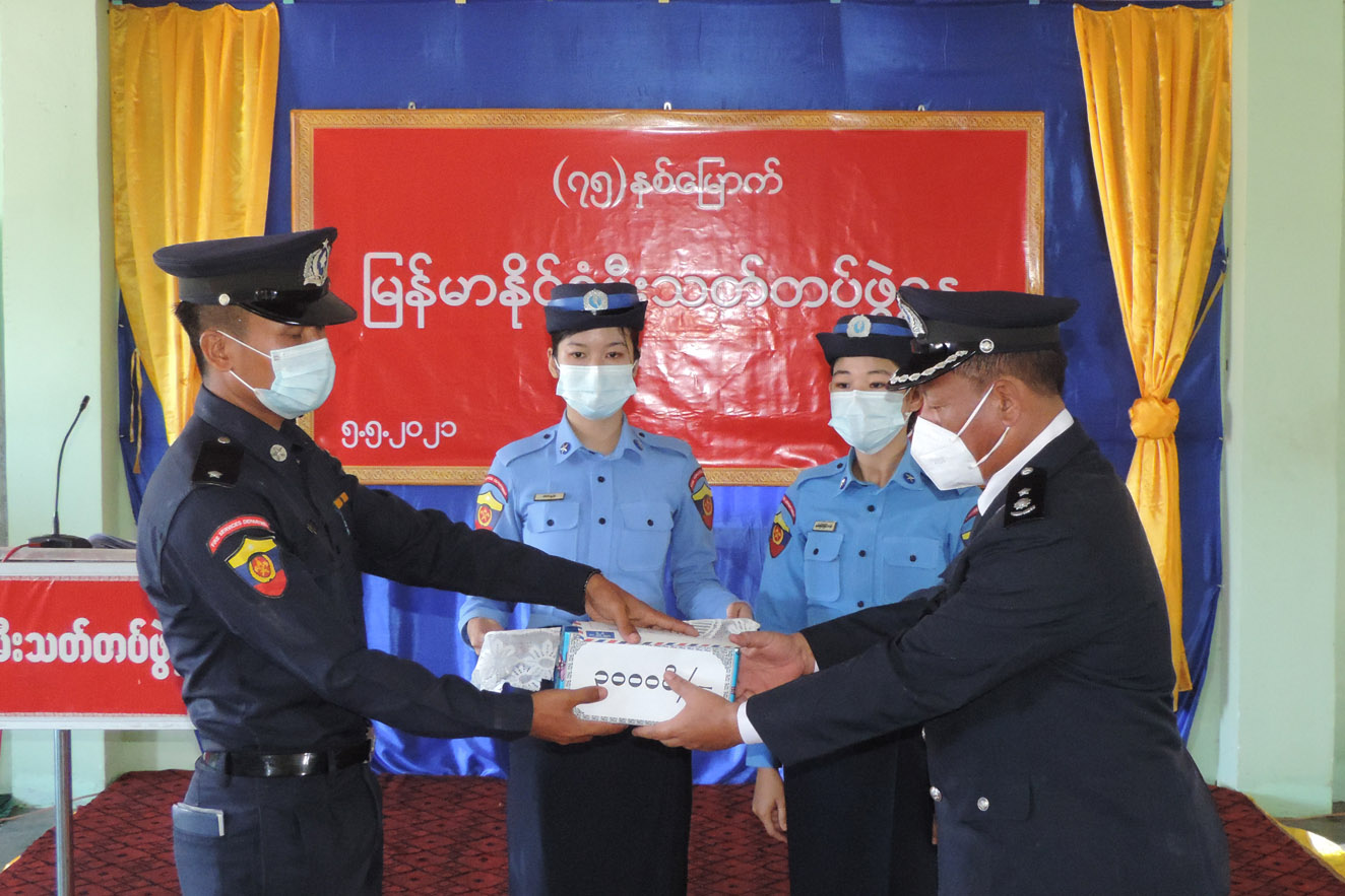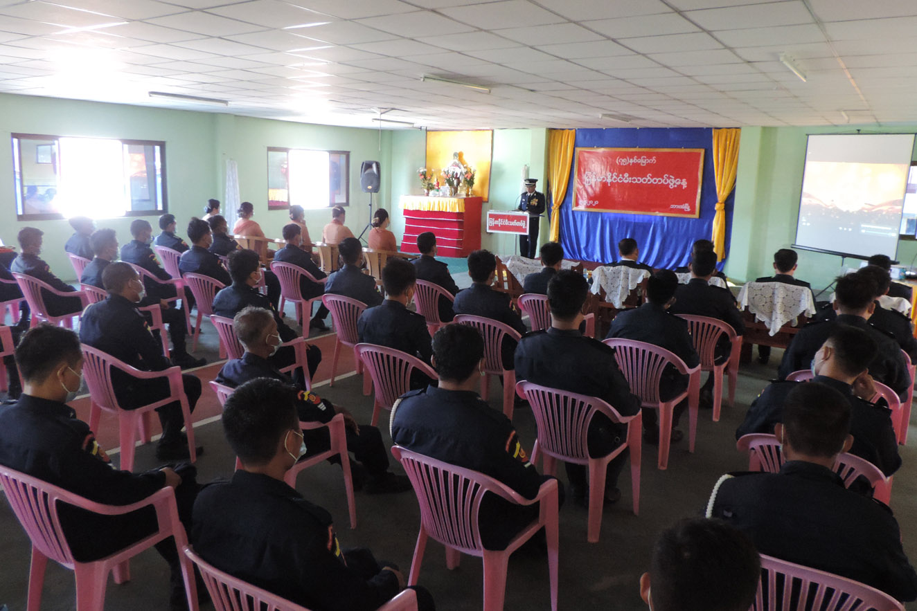ရှေ့ဦးစွာ မီးသတ်ဦးစီးဌာနညွှန်ကြားရေးမှူးချုပ်၏(၇၅)နှစ်မြောက် မြန်မာနိုင်ငံမီးသတ်တပ်ဖွဲ့နေ့ မိန့်ခွန်းကို ကရင်ပြည်နယ် မီးသတ်ဦးစီးမှူး ဦးတင်မောင်နီက ဖတ်ကြားသည်။ ထို့နောက်(၇၅)နှစ်မြောက် စိန်ရတုအထိမ်း အမှတ် မြန်မာနိုင်ငံမီးသတ်တပ်ဖွဲ့နေ့ စံပြစခန်းဆုချီးမြှင့်ရာ မီးသတ်တပ်ဖွဲ့နေ့စံပြစခန်းဆုကို လှိုင်းဘွဲမြို့နယ်က လည်းကောင်း၊ အရာရှိအဆင့်ကျင့်ဝတ်ဆုကို မြိုင်ကလေးနယ်မြေမီးသတ်စခန်း၊ မီးသတ် အကြပ်အဆင့်ကျင့်ဝတ် ဆုကို မြဝတီခရိုင်မီးသတ်ဦးစီးမှူးရုံး၊ မီးသတ်တပ်သားအဆင့့််ကျင့်ဝတ်ဆုကို မြိုင်ကလေး နယ်မြေမီးသတ်စခန်း တို့မှ လည်းကောင်း၊ ဝန်ထမ်း လိုင်းခန်း သန့်ရှင်းသာယာလှပမှုဆုကို ဘားအံခရိုင်မီးသတ် စခန်းမှလည်းကောင်း ရရှိကြရာ ကရင်ပြည်နယ် မီးသတ်ဦးစီးမှူး၊ ဒုတိယပြည်နယ်ဦးစီးမှုးနှင့်တာဝန်ရှိသူများက အသီးသီးဆုများ ချီးမြှင့် ပေးခဲ့ကြောင်း သိရသည်။