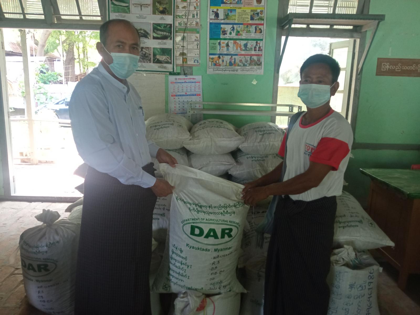 ဆက်လက်၍ မြို့နယ်စိုက်ပျိုးရေးဦးစီးဌာန မြို့နယ်ဦးစီးမှူးနှင့် တာဝန်ရှိသူများက တောင်သူများ လက်ဝယ်အရောက် မိုးမြေပဲမျိုးများကို ထောက်ပံ့ပေးအပ်သည်။ မိုးမြေပဲမျိုးကို မြင်စိုင်းကျေးရွာ တောင်သူ(၅)ဦး စိုက်ပျိုးရန် (၁၅)ဧကဖြစ်ကြောင်း၊ မိုးမြေပဲမျိုးစေ့ထုတ်စံပြကွက် စိုက်ပျိုးရန်အတွက် တစ်ဧကလျှင် မြေပဲမျိုးအတောင့်(၆)တင်း ထောက်ပံ့ပေးပါကြောင်း မြို့နယ်စိုက်ပျိုးရေးဦးစီးဌာန မြို့နယ်ဦးစီးမှူး ဦးကျော်ကျော်ညွန့်၏ ပြောကြားချက်အရသိရသည်။