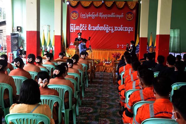 ရခိုင်ပြည်နယ် စစ်တွေမြို့ရှိ ပြည်နယ်မီးသတ်ဦးစီးဌာန၌ ယမန်နေ့ နံနက် ၈ နာရီက ကျင်းပ သည့် အခမ်းအနားတွင် ရခိုင်ပြည်နယ်မီးသတ်ဦးစီးဌာနမှ ညွှန်ကြားရေးမှူး ဦးသန်းထိုက်က (၇၅) နှစ်မြောက်စိန်ရတု အထိမ်းအမှတ် မြန်မာနိုင်ငံမီးသတ်တပ်ဖွဲ့နေ့အတွက် ဂုဏ်ပြုမိန့်ခွန်း ပြောကြားပြီး ထူးချွန်းမီးသတ်တပ်ဖွဲ့ဝင်များအား ညွှန်ကြားရေမှူးနှင့် တာဝန်ရှိသူများက အသီးသီးပေးအပ်ချီးမြှင့်ကြသည်။