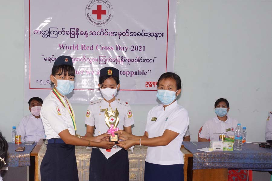 ဆက်လက်၍ မွန်းလွဲ(၁)နာရီတွင် ကမ္ဘာ့ကြက်ခြေနီနေ့အထိမ်းအမှတ် သဝဏ်လွှာ ဖတ်ပွဲကျင်းပရာ နေပြည်တော် ကြက်ခြေနီသူနာပြုတပ်ဖွဲ့မှ ဒုတိယတိုင်းတပ်ဖွဲ့မှူး ဦးစိုးလင်းဦးက အမှာစကားပြောကြားပြီး ကမ္ဘာ့ကြက်ခြေနီများနေ့အထိမ်းအမှတ်အခမ်းအနားသို့ မြန်မာနိုင်ငံကြက်ခြေနီ အသင်း ဥက္ကဋ္ဌဒေါက်တာမောင်မောင်မြင့်ပေးပို့သော သဝဏ်လွှာအား ဥတ္တရခရိုင် ကြက်ခြေနီကြီးကြပ်မ ကော်မတီ ဥက္ကဌ ဒေါ်မေကလျာဝင်းက ဖတ်ကြားသည်။ ထို့နောက် ကြက်ခြေနီကျင့်ဝတ်(၅၀)ရေးဖြေ ပြိုင်ပွဲတွင် ဆုရရှိသူများအား တာဝန်ရှိသူများကဆုများနှင့် ဂုဏ်ပြုလက်ဆောင်များ ပေးအပ်ခဲ့သည်။