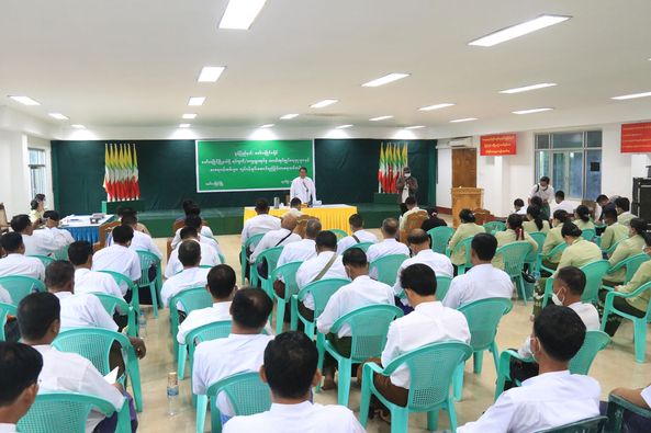 မွန်ပြည်နယ် မော်လမြိုင်မြို့နယ်ရှိ ရပ်ကွက်/ ကျေးရွာအုပ်စု ယာယီအုပ်ချုပ်ရေးမှူးများနှင့် စာရေးဝန်ထမ်းများ လုပ်ငန်းစွမ်းဆောင်ရည်မြင့်မားရေး သင်တန်းဖွင့်ပွဲ အခမ်းအနားကို ယနေ့ နံနက် ၈ နာရီခွဲက မော်လမြိုင်မြို့ စုပေါင်းရုံးခြောက်ထပ်အစည်းအဝေးခန်းမ၌ ကျင်းပရာ မွန်ပြည်နယ်စီမံအုပ် ချုပ်ရေးကောင်စီဥက္ကဋ္ဌ ဦးဇော်လင်းထွန်း တက်ရောက်အမှာစကား ပြောကြားသည်။