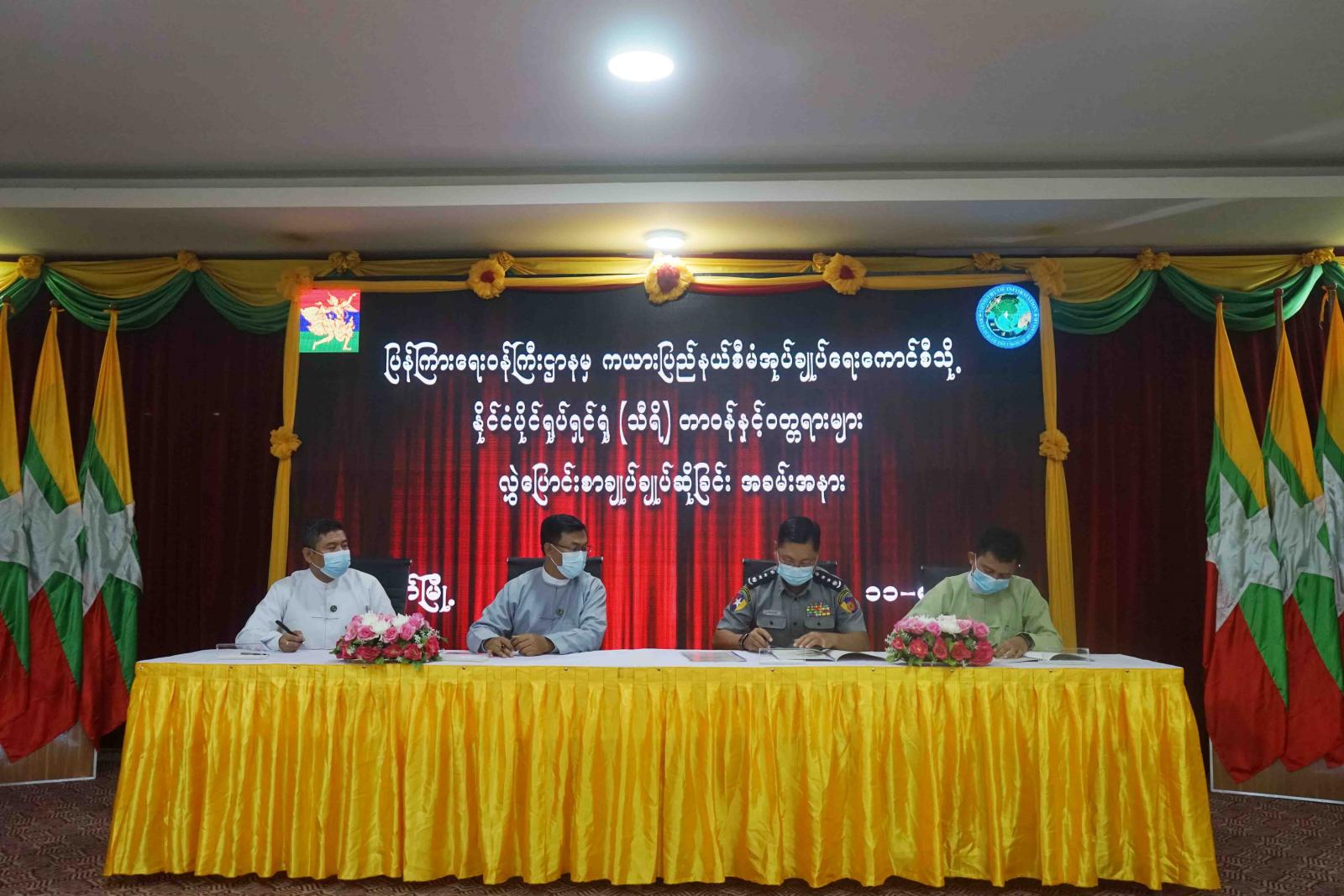 ကယားပြည်နယ်ရှိ နိုင်ငံပိုင်သီရိရုပ်ရှင်ရုံနှင့် ပတ်သက်၍ ကြီးကြပ်ခြင်း၊ စီမံခန့်ခွဲခြင်းလုပ်ငန်း များကို ကယားပြည်နယ် စီမံအုပ်ချုပ်ရေးကောင်စီက စနစ်တကျ ဆောင်ရွက်နိုင်ရေးအတွက် တာဝန်နှင့်ဝတ္တရား လွှဲပြောင်းသည့််စာချုပ် (Deed of Assignment) ချုပ်ဆိုခြင်း အခမ်းအနားကို ယနေ့ နံနက်ပိုင်းတွင် ကယားပြည်နယ် စီမံအုပ်ချုပ်ရေးကောင်စီရုံး၌ ကျင်းပရာ ပြန်ကြားရေး ဝန်ကြီးဌာန ဒုတိယဝန်ကြီးနှင့် ပြည်နယ်စီမံအုပ်ချုပ်ရေးကောင်စီမှ တာဝန်ရှိသူများ တက်ရောက် ကြသည်။
