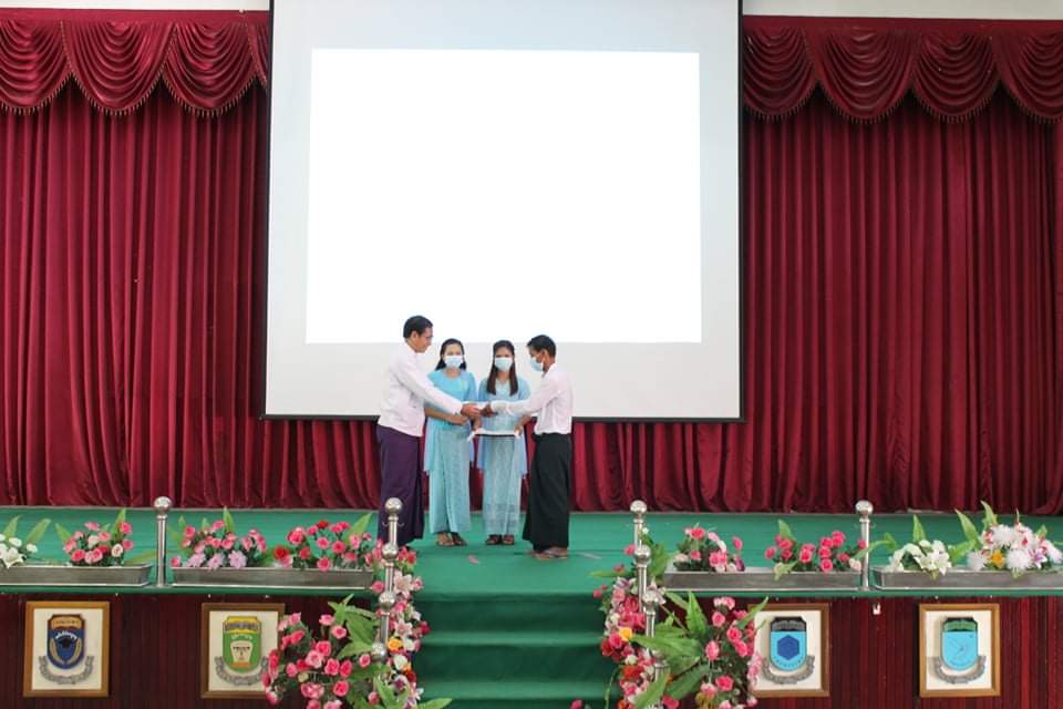 ဧရာဝတီတိုင်းဒေသကြီး၊ မအူပင်ခရိုင်၊ မအူပင်မြို့နယ်အိုင်ဝိုင်းကျေးရွာတွင် မအူပင်တက္ကသိုလ်တည်ထောင်ဖွင့်လှစ်ထားလျက်ရှိရာ တည်ဆောက်ထားသော မြေနေရာ၏ မူလပိုင်ရှင်တောင်သူများအား မြေယာလျော်ကြေးပေးအပ်ခြင်းအခမ်းအနားကို ယမန်နေ့နံနက် ၁၁ နာရီက မအူပင်တက္ကသိုလ် ပင်မဆောင်ဘွဲ့နှင်းသဘင် ခန်းမတွင် ကျင်းပသည်။