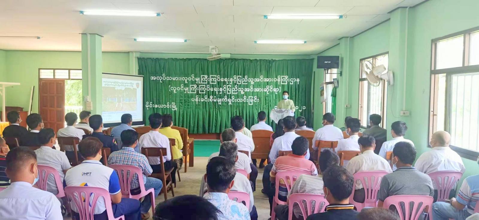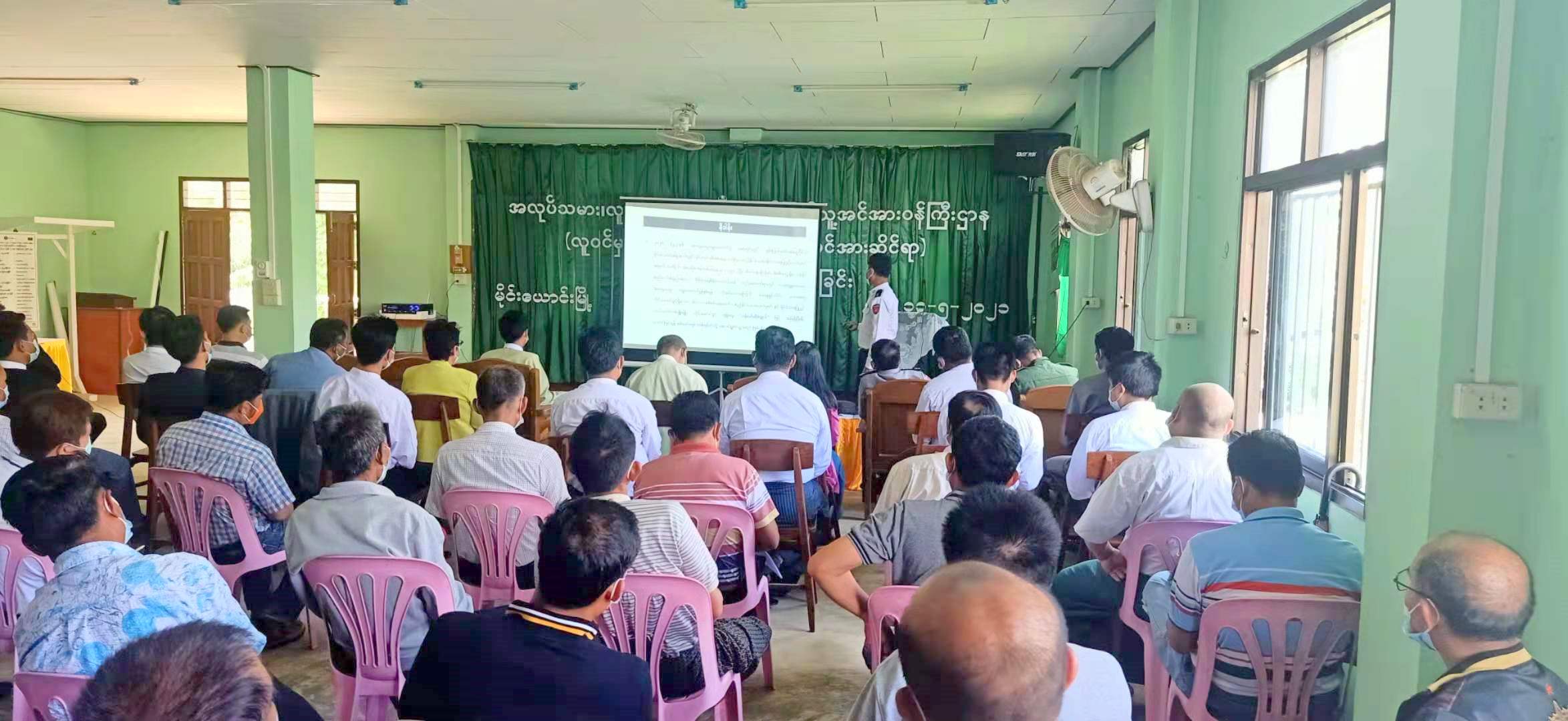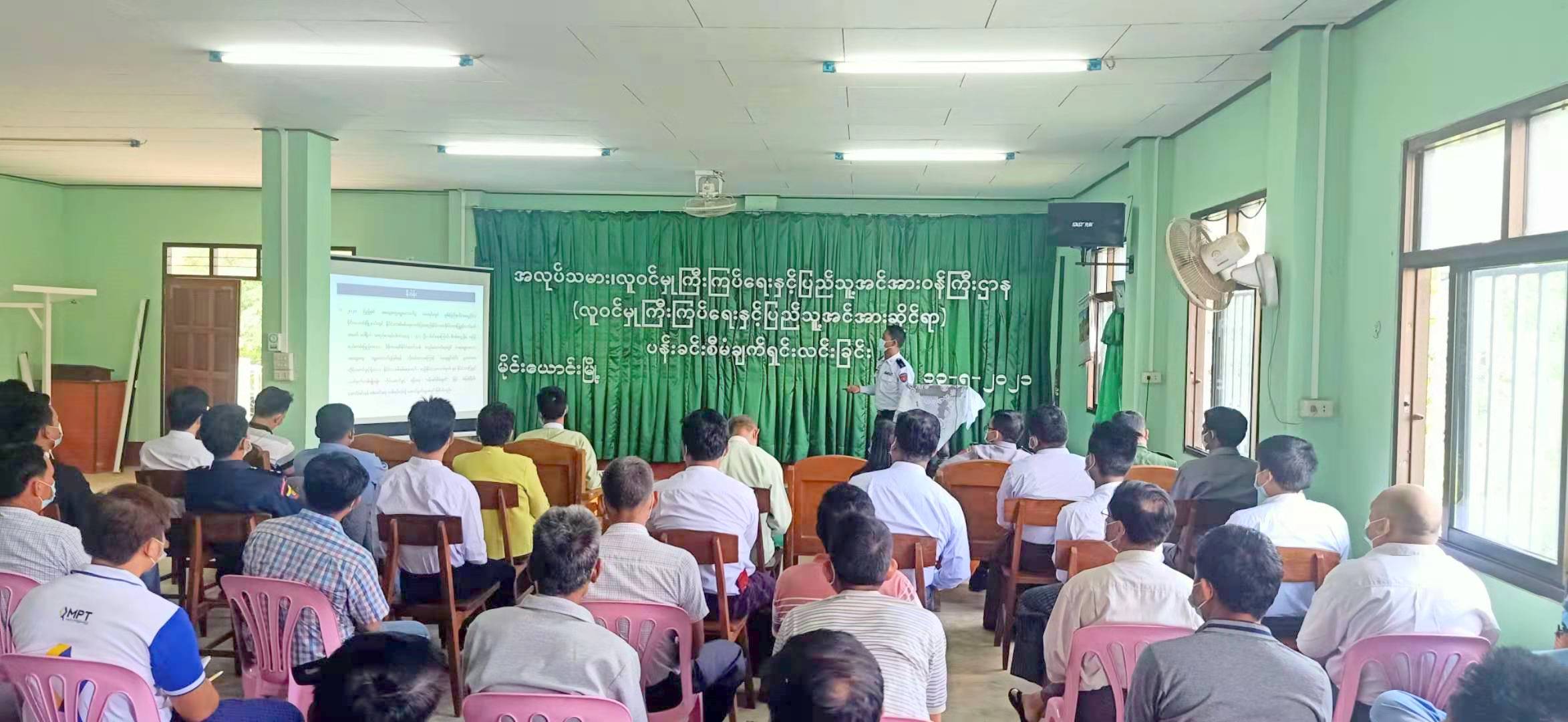 ရှေးဦးစွာ မြို့နယ်စီမံအုပ်ချုပ်ရေးအဖွဲ့ဥက္ကဋ္ဌ မြို့နယ်အုပ်ချုပ်ရေးမှူး ဦးနေမြတ်သူက အဖွင့်အမှာစကားပြောကြားပြီး လူဝင်မှုကြီးကြပ်ရေးနှင့်ပြည်သူ့အင်အားဆိုင်ရာ မြို့နယ်ဦးစီးမှူးရုံးမှ လဝကမှူး ဦးပွားမောင် က ရွေ့ပြောင်းနေထိုင်သူများအတွက် မူလဒေသတွင် အိမ်ထောင်စုလူဦးရေစာရင်းရှိသော်လည်း လက်ရှိဒေသတွင် ကိုင်ဆောင်လက်မှတ် မရှိသူများအား ဆောင်ရွက်ပေးခြင်း ပန်းခင်းစီမံချက်အကြောင်းကို ပရိုဂျက်တာဖြင့် ရှင်းလင်းပြောကြားသည်။