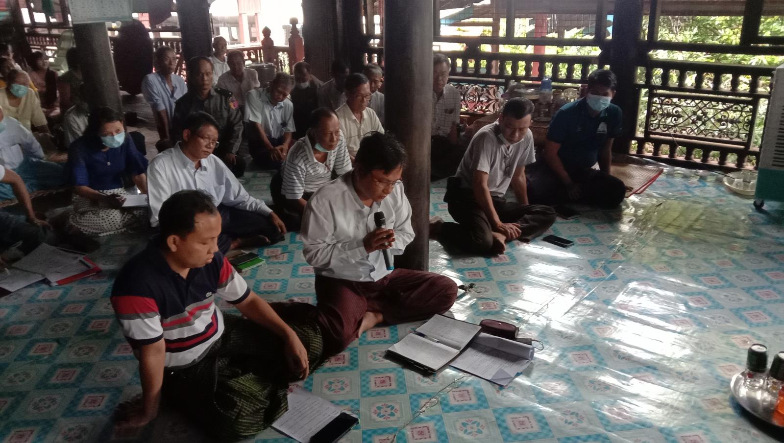 ရှေးဦးစွာ ကြွရောက်လာသော ဆရာတော်များနှင့် တက်ရောက်လာသော ခရိုင်/မြို့နယ်အဆင့် ဌာနဆိုင်ရာတာဝန်ရှိသူများ၊ ရပ်ကွက်အုပ်ချုပ်ရေးမှူးများ၊ မြို့မဂေါပကပ်အဖွဲ့တို့က “နမောတဿ” ၃ကြိမ်သံပြိုင်ရွတ်ဆို ဘုရားကန်တော့၍ အခမ်းအနားဖွင့်လှစ်ခဲ့ပြီး၊ မြို့နယ်သံဃနယကအဖွဲ့ဥက္ကဌ ဆရာတော် ဘဒ္ဒန္တဦးစိန္တိတထံမှ ရှစ်ပါးသီလခံယူ ဆောက်တည်ကြသည်။ထို့နောက် ခရိုင်သာသနာ ထွန်းကားပြန့်ပွားရေးဦးစီးဌာန ခရိုင်ဦးစီးမှူးက အမှာစကား လျှောက်ထားပြောကြားပြီး၊ တက်ရောက်လာသော ဧည့်ပရိတ်သတ်များနှင့်အတူ အလှူငွေရရှိရေး၊ အထွေထွေညှိနှိုင်း ဆွေးနွေးခြင်းနှင့် လုပ်ငန်းတာဝန်အသီးသီးခွဲဝေခြင်းများ ဆောင်ရွက်ခဲ့ကြသည်။အစည်းအဝေးကို “ဗုဒ္ဓသာသနံ စိရံတိဌတု ” သုံးကြိမ်ရွတ်ဆိုဆုတောင်း၍ ရုတ်သိမ်းခဲ့သည်။