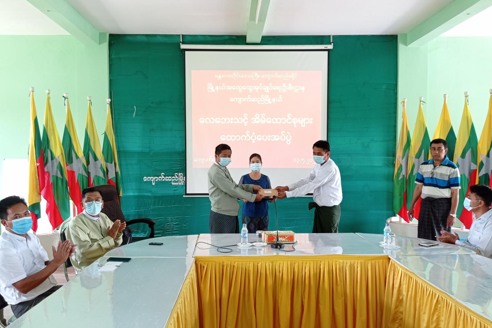 ရှေးဦးစွာ မြို့နယ်စီမံအုပ်ချုပ်ရေးအဖွဲ့ဥက္ကဋ္ဌဦးကျော်လွင်က အဖွင့်အမှာစကားပြေကြားခဲ့ပြီး လေဘေးသင့်ခဲ့ပြီး ထိခိုက်ပျက်စီးခဲ့သော ပါယ်လေးဆယ်ကျေးရွာ၊ ရွာပုလဲကျေးရွာ၊ အနောက်သာဂရကျေးရွာ၊ မိုးကြိုးကုန်း ကျေးရွာ၊ သံချပ်ကုန်းကျေးရွာနှင့် ရှမ်းသူငယ်ကျေးရွာ၊ ဒါန်းတိုင်ကျေးရွာ၊ ကျောက်ဆောက်ကလေးကျေးရွာ၊ ကျောက်ဆောက်ကုန်းကျေးရွာ၊ ပေတောကြီးကျေးရွာနှင့် ကွမ်းခြေကျေးရွာတို့မှ ထိခိုက်ပျက်စီးခဲ့သည့် ဘုန်းတော်ကြီးကျောင်းနှင့် အိမ်ထောင်စုများအား မြို့နယ်စီမံအုပ်ချုပ်ရေးအဖွဲ့ဥက္ကဋ္ဌနှင့် တာဝန်ရှိသူများက ကယ်ဆယ်ရေးပစ္စည်းများနှင့် ထောက်ပံ့ငွေများ ပေးအပ်ခဲ့ကြောင်း သိရှိရသည်။